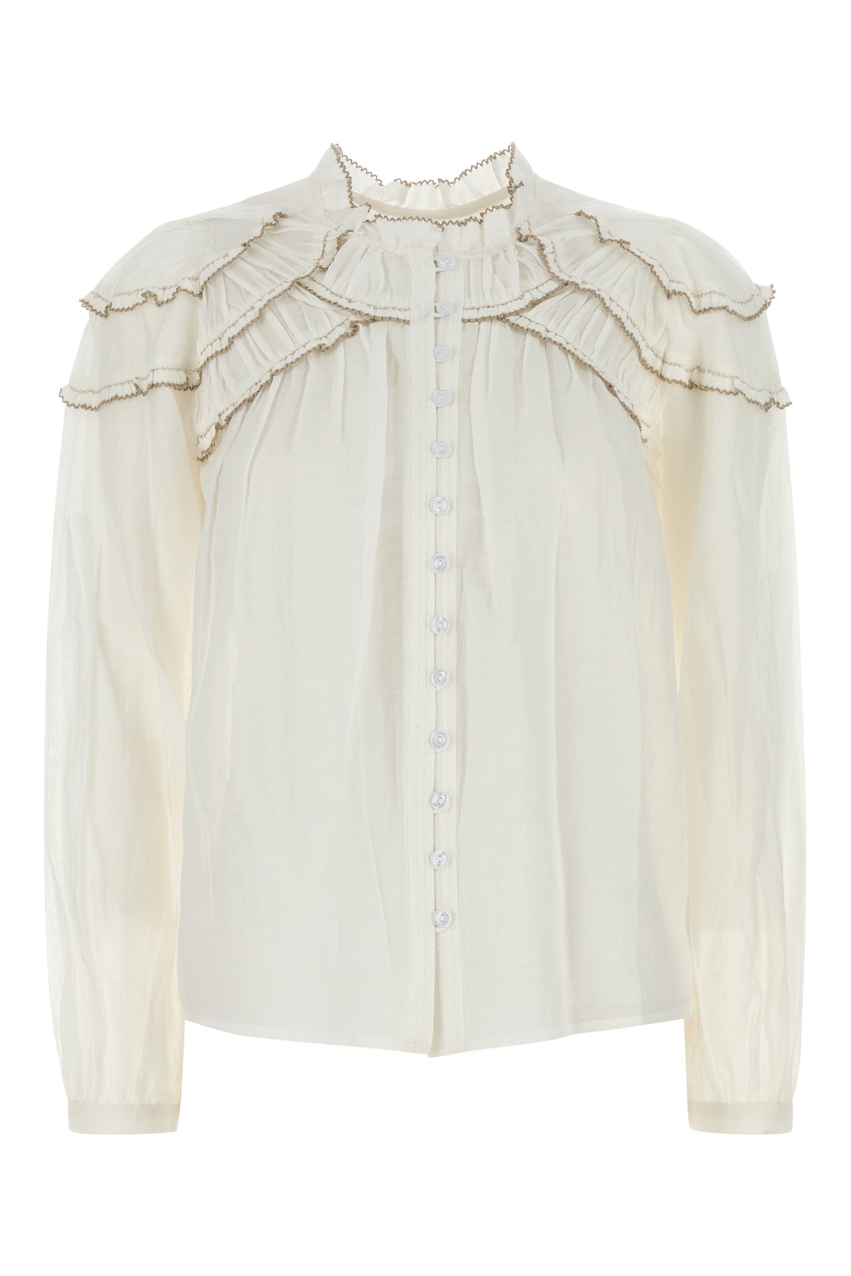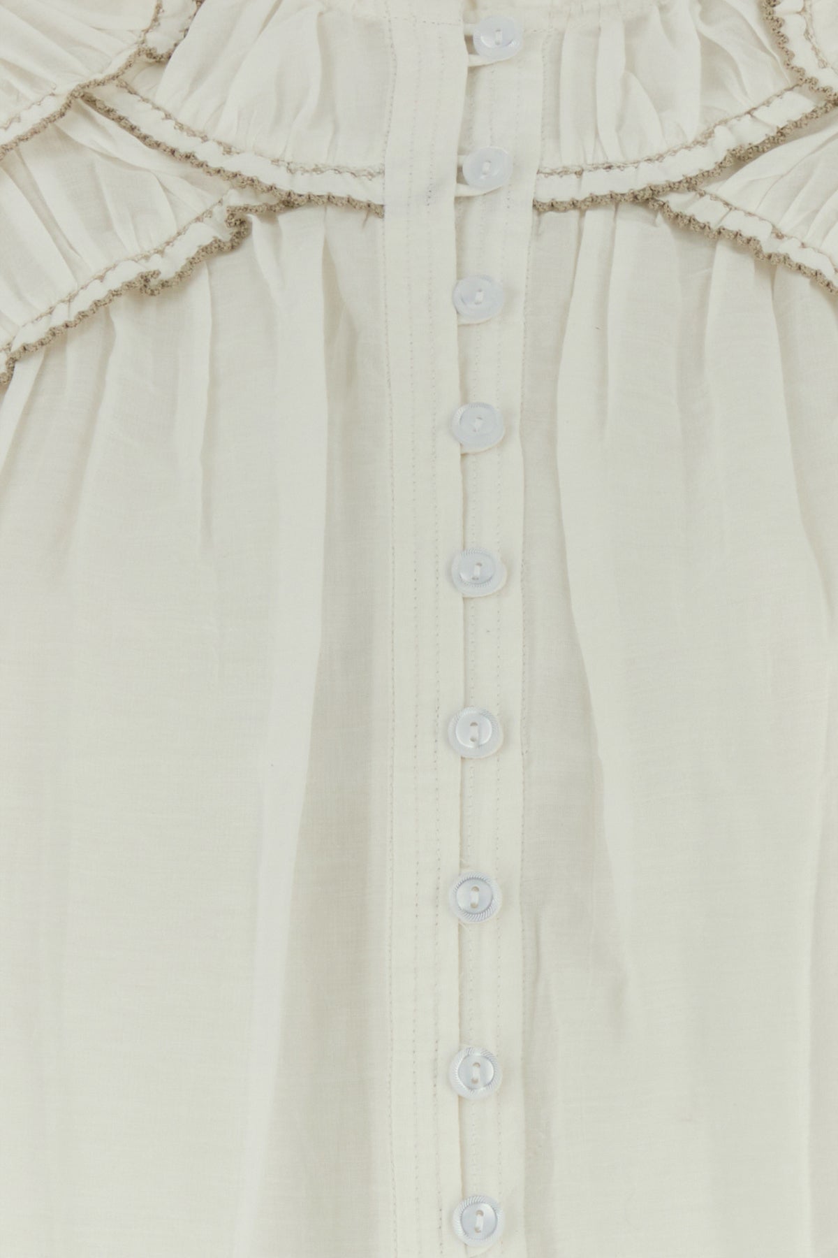 Shirt realized in cotton blend enriched by contrasting ruffles at the top.