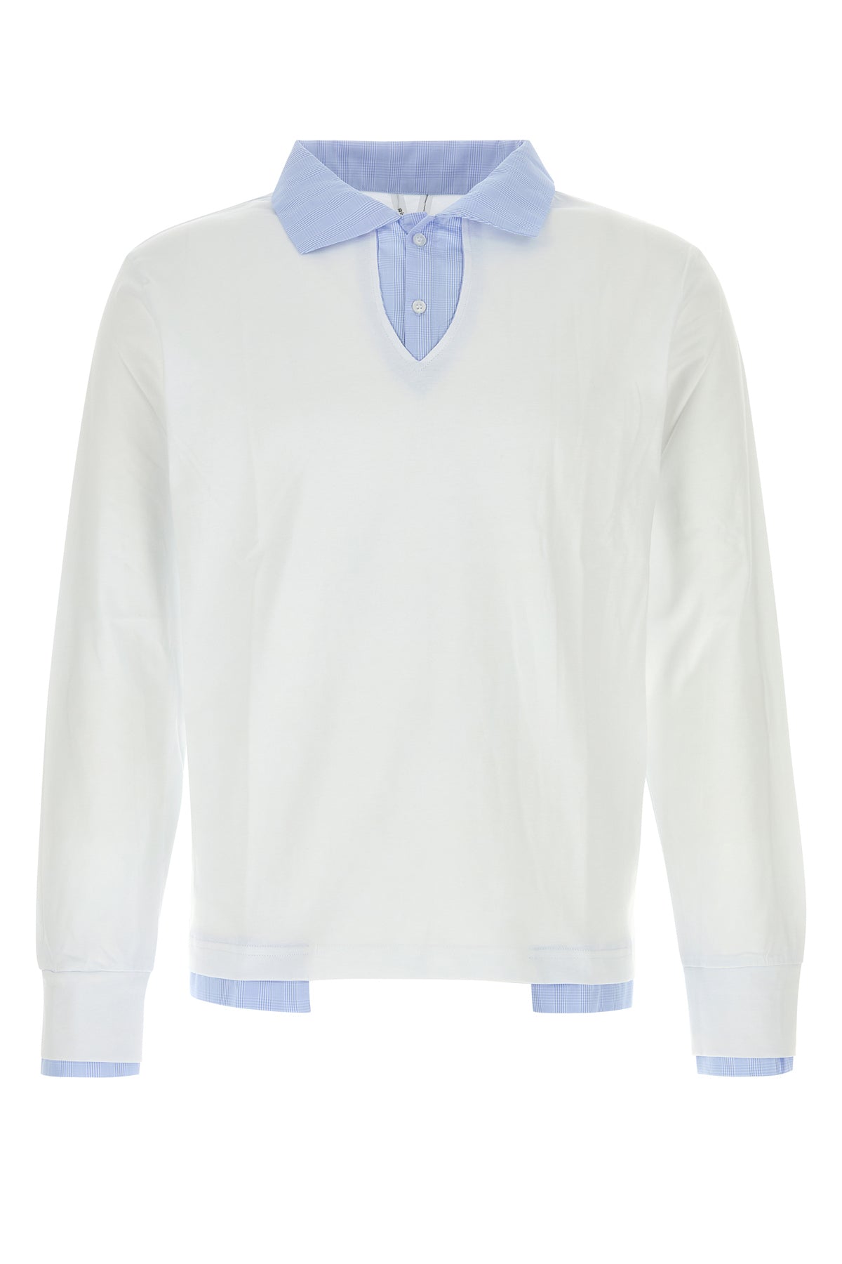 Long-sleeve polo shirt realized in pure cotton enriched by tartan motif poplin inserts.