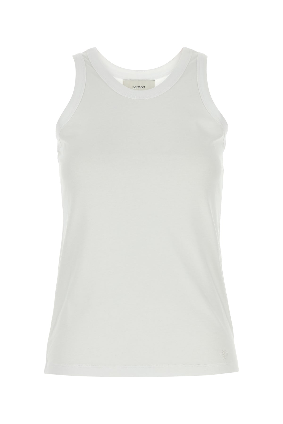 Tank top realized in Supima cotton characterized by tonal embroidered logo on the hemline.