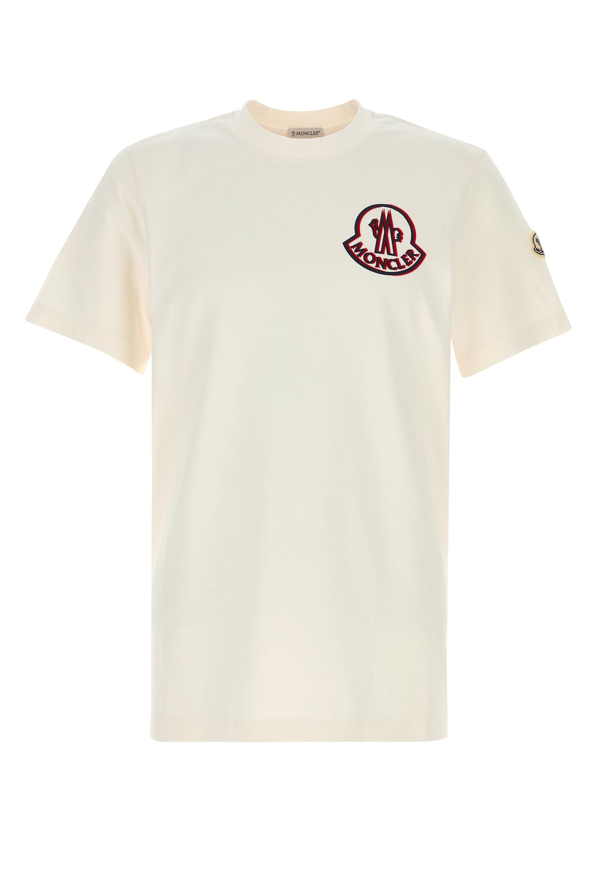 T-shirt realized in pure cotton characterized by contrasting printed logo on the chest enriched by logoed patch on the sleeve.