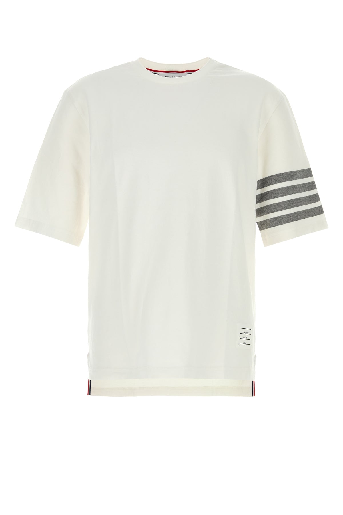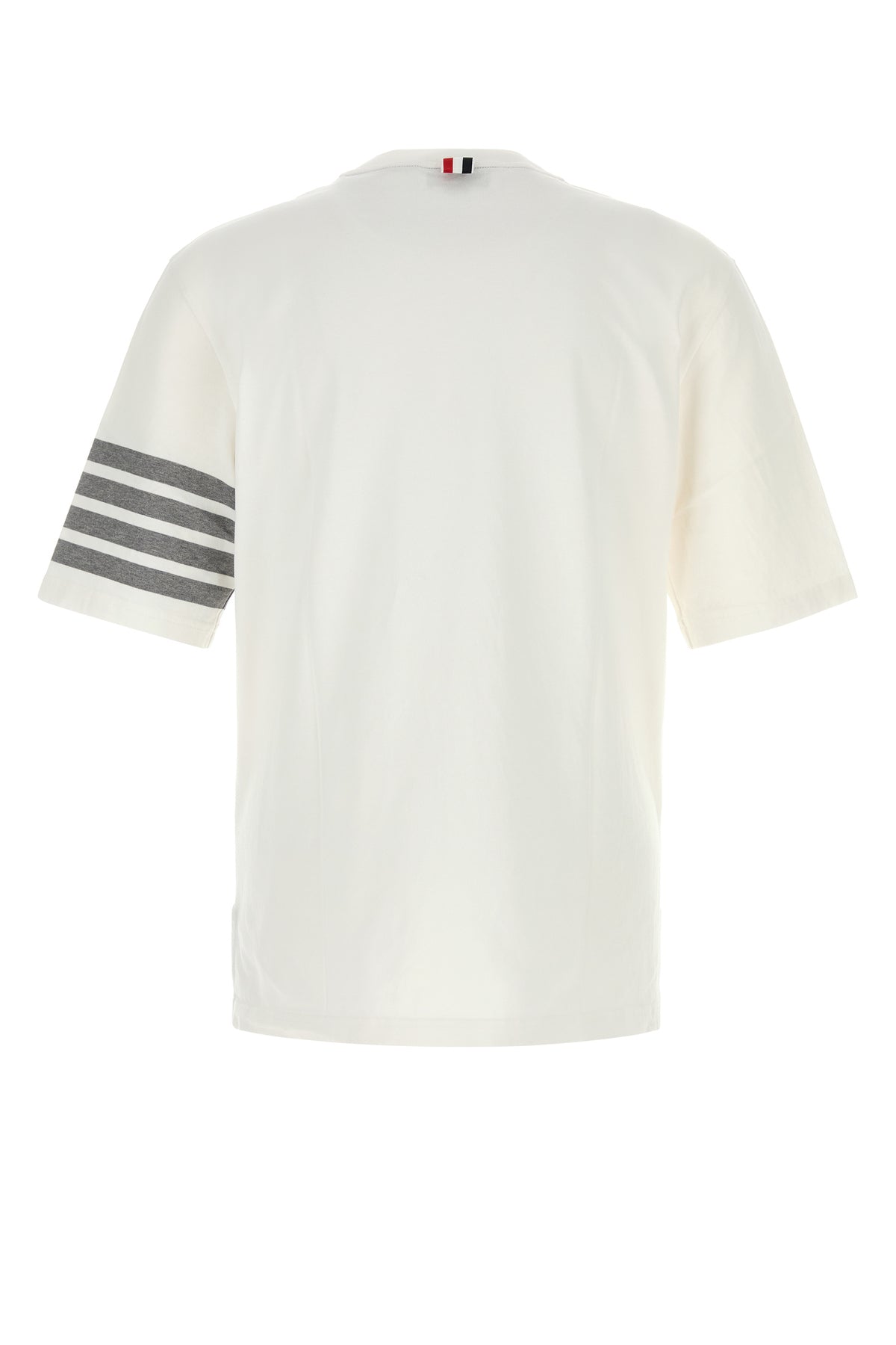T-shirt realized in pure cotton characterized by striped embroidery on the sleeve enriched by contrasting logoed label on the hemline and iconic tricolor label at the back.
