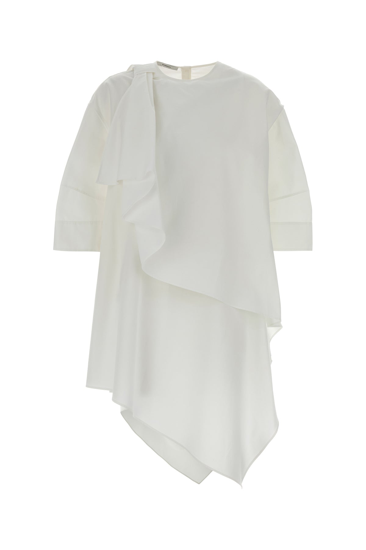 Asymmetric mini dress realized in pure cotton poplin enriched by max draped bow on the shoulder.