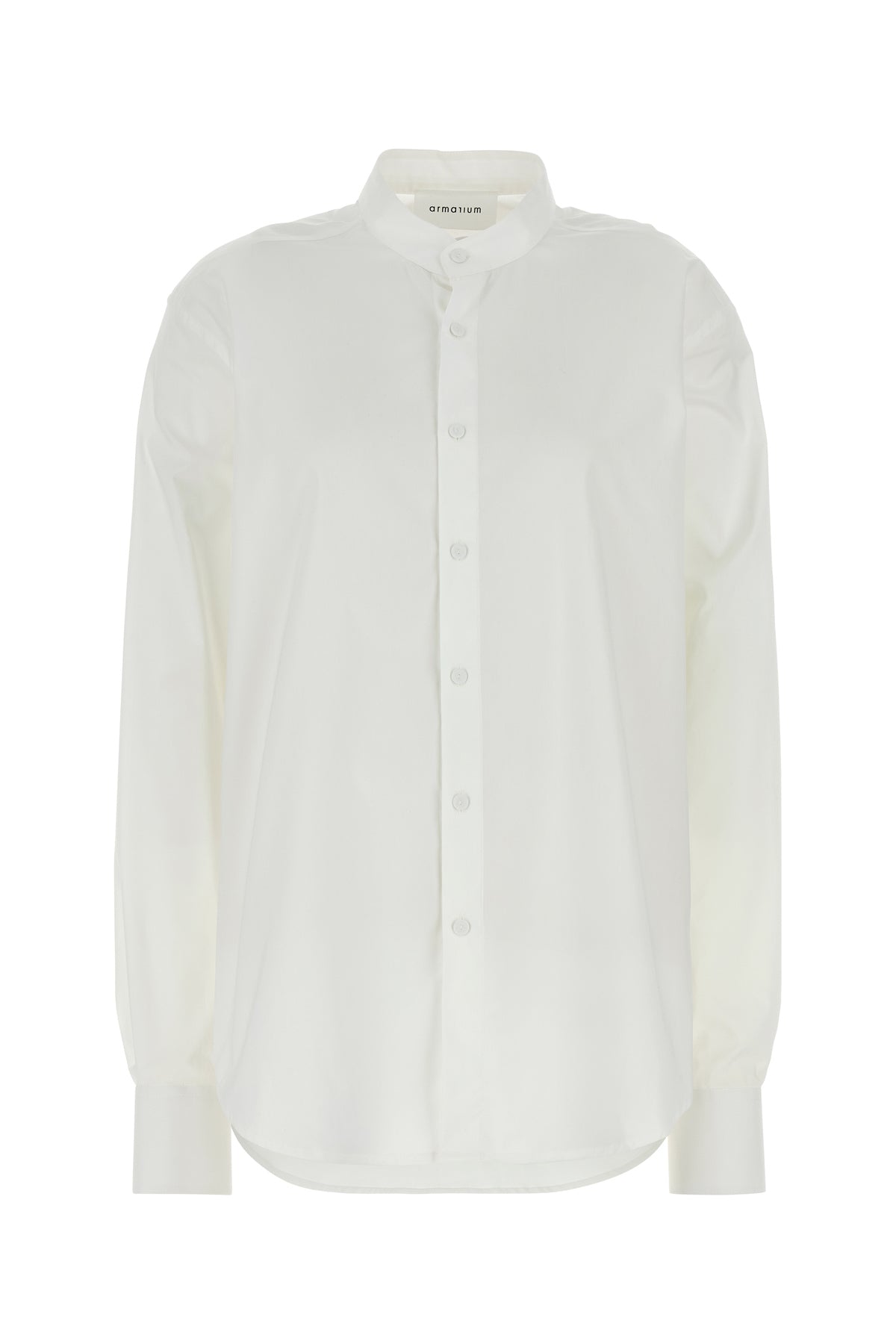 Oversize shirt realized in stretch cotton poplin enriched by tonal fabric insert with decorative buttons on the side.
