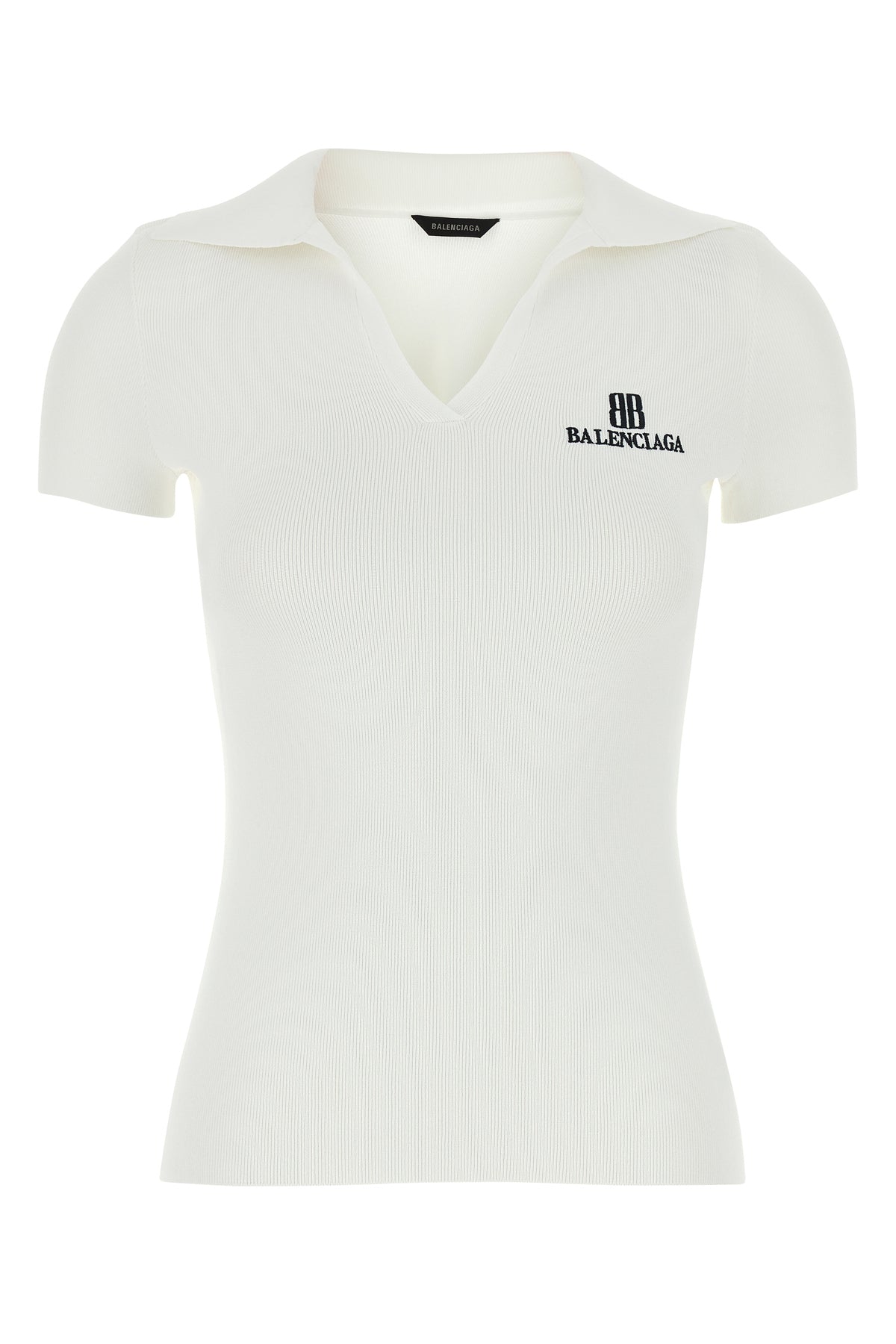 Fitted polo shirt realized in ribbed viscose blend characterized by contrasting BB Balenciaga embroidery on the chest.