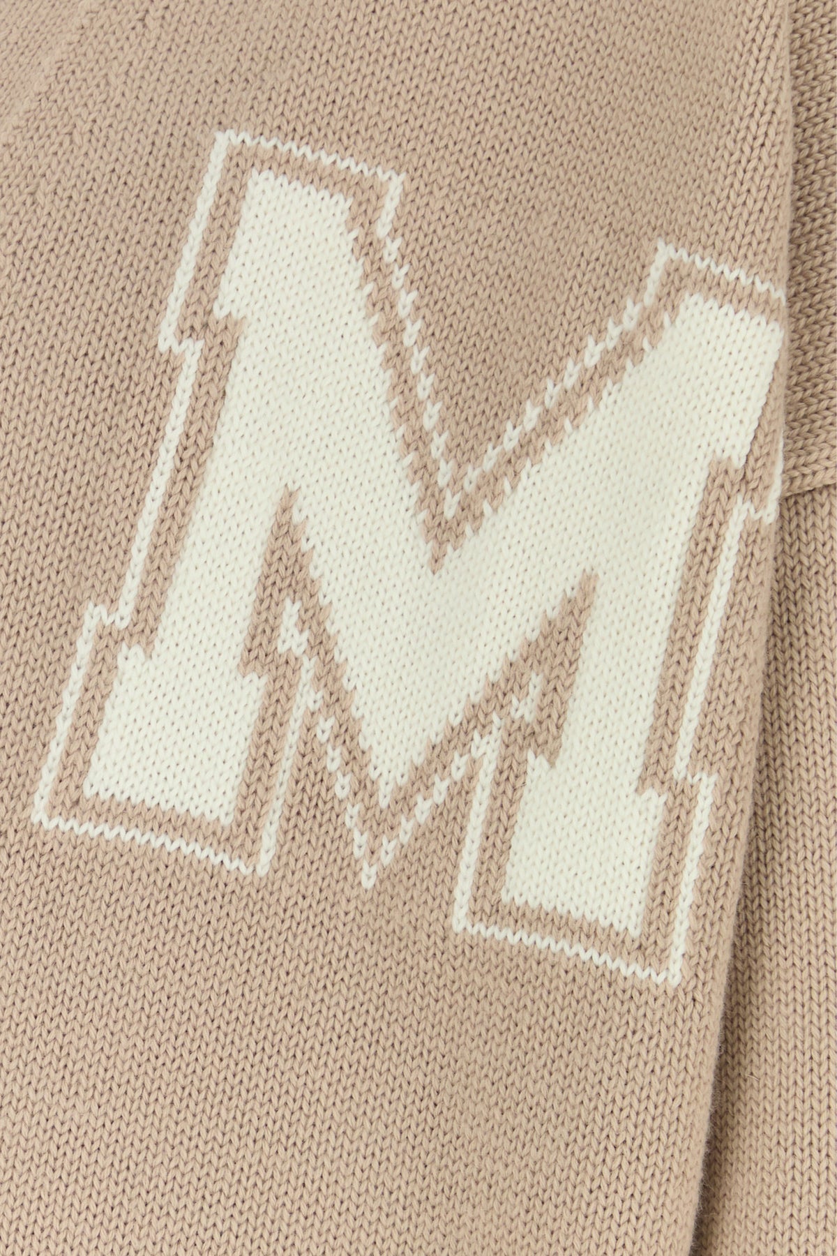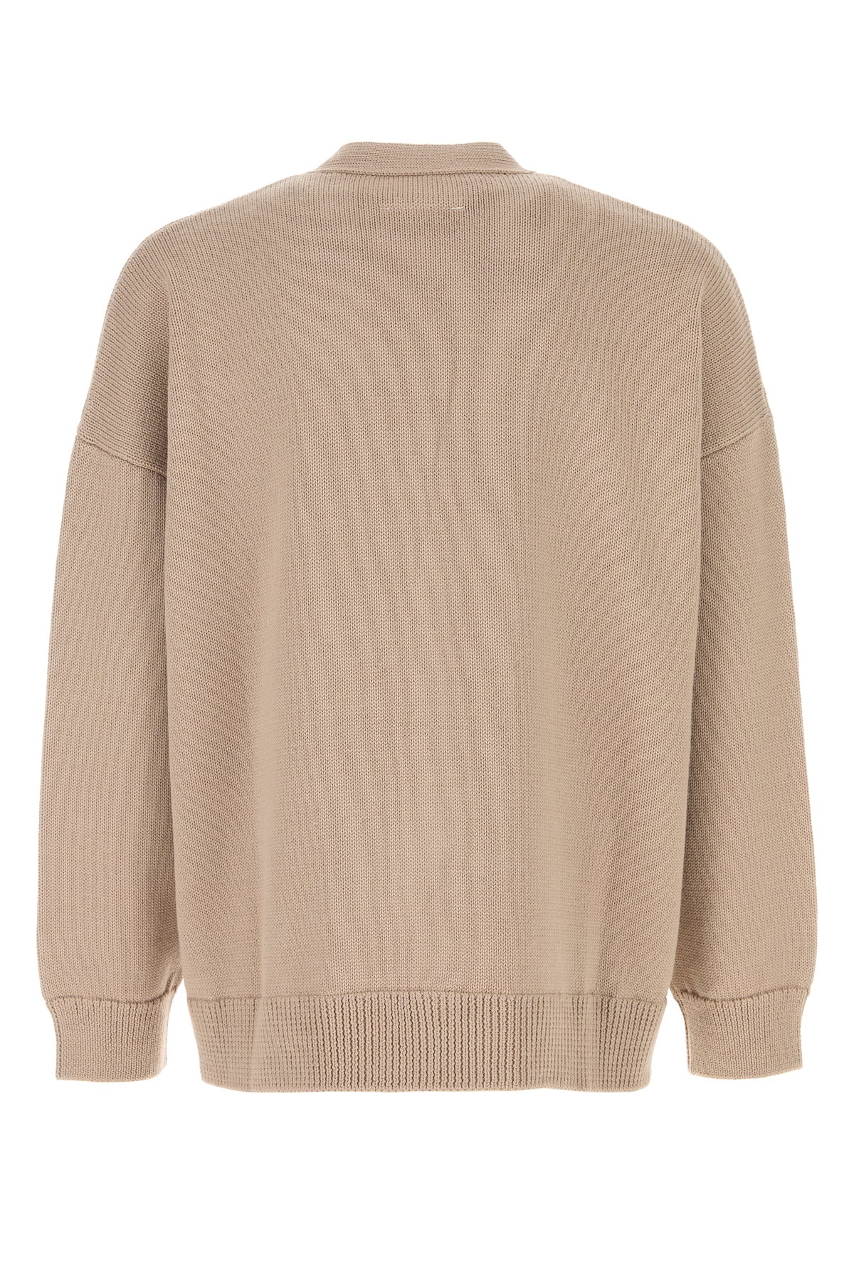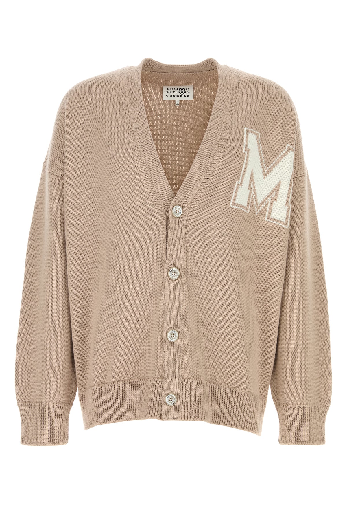 Cardigan realized in virgin wool and acrylic with poplin insert on the hemline characterized by logoed embroidery on the chest and iconic contrasting stitching at the back.