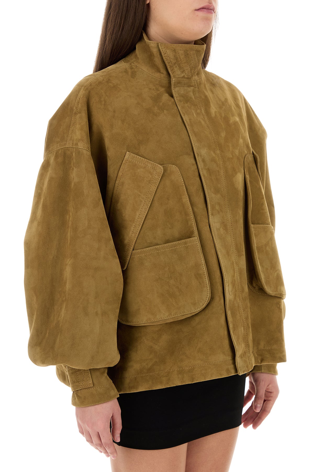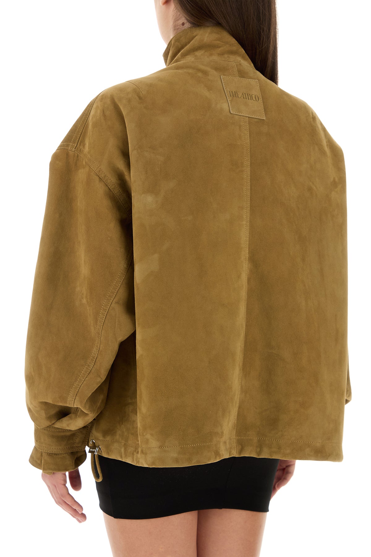 Bomber jacket realized in suede enriched by tonal logoed patch at the back.