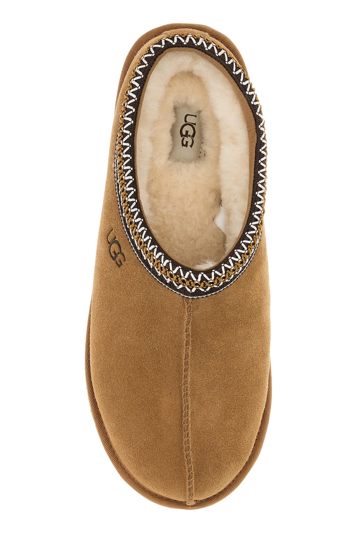 Slippers realized in suede characterized by contrasting logo at the front enriched by contrasting trimming.