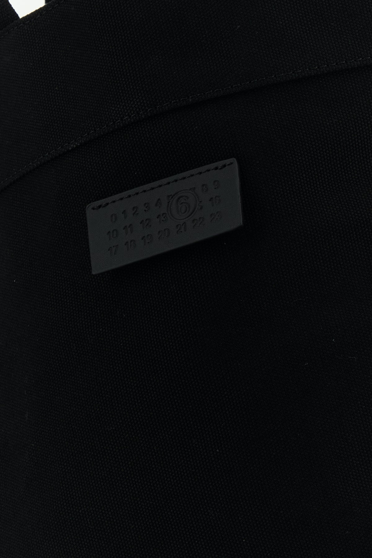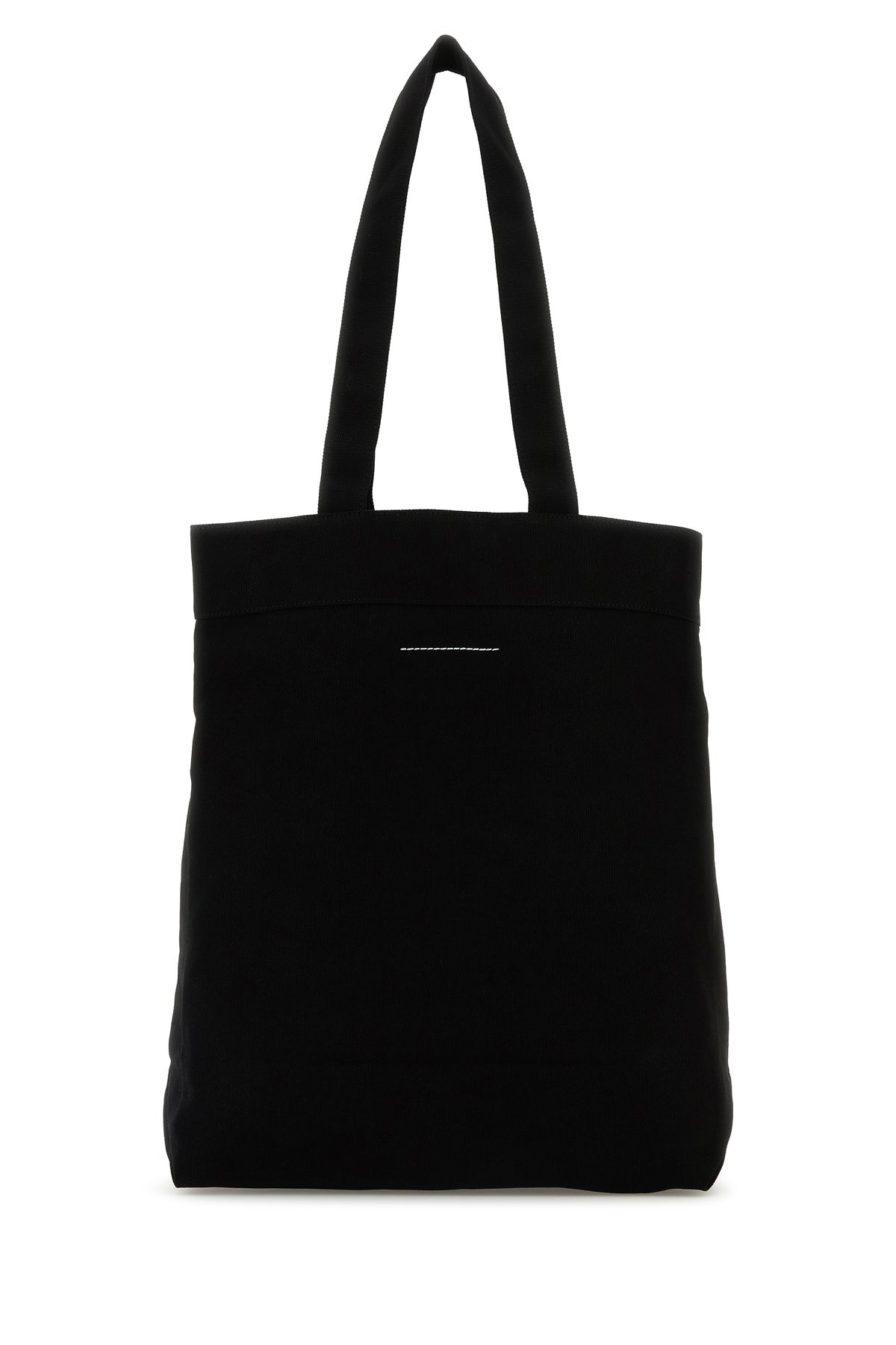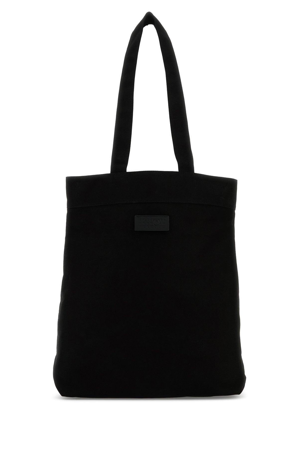Shopping bag realized in canvas characterized by iconic contrasting stitching at the back enriched by tonal logoed label at the front.