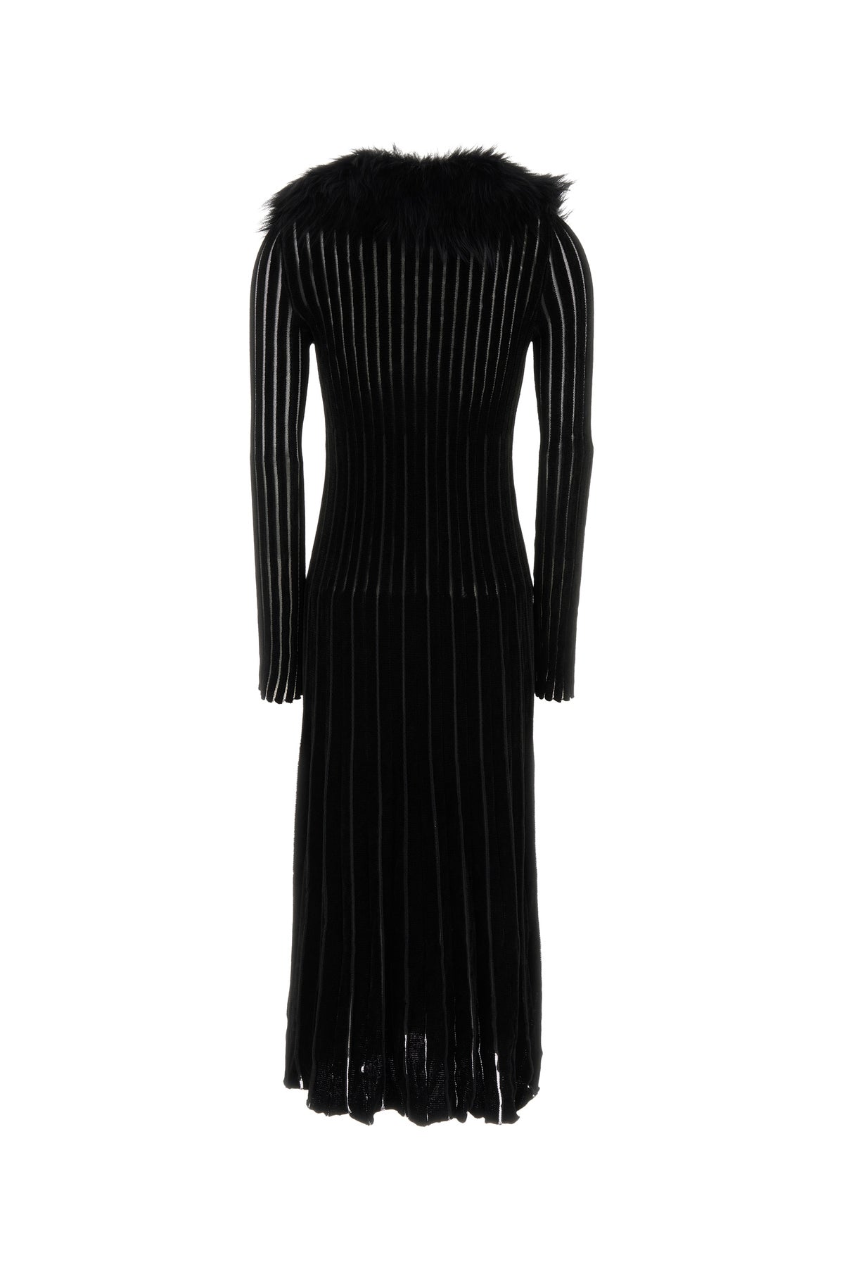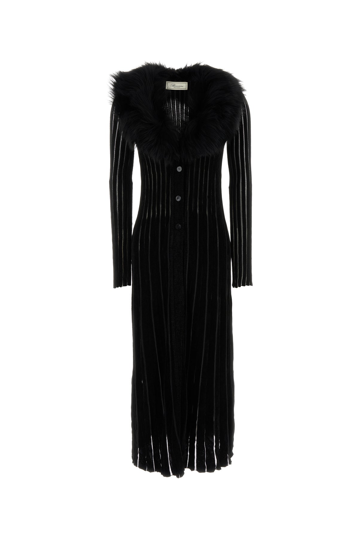 Long-cut cardigan realized in chenille characterized by fur V neckline.