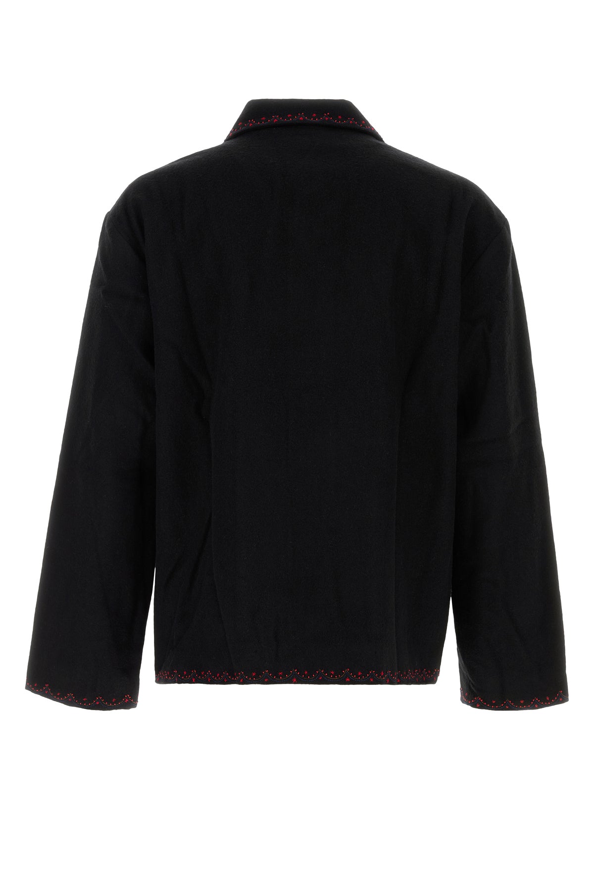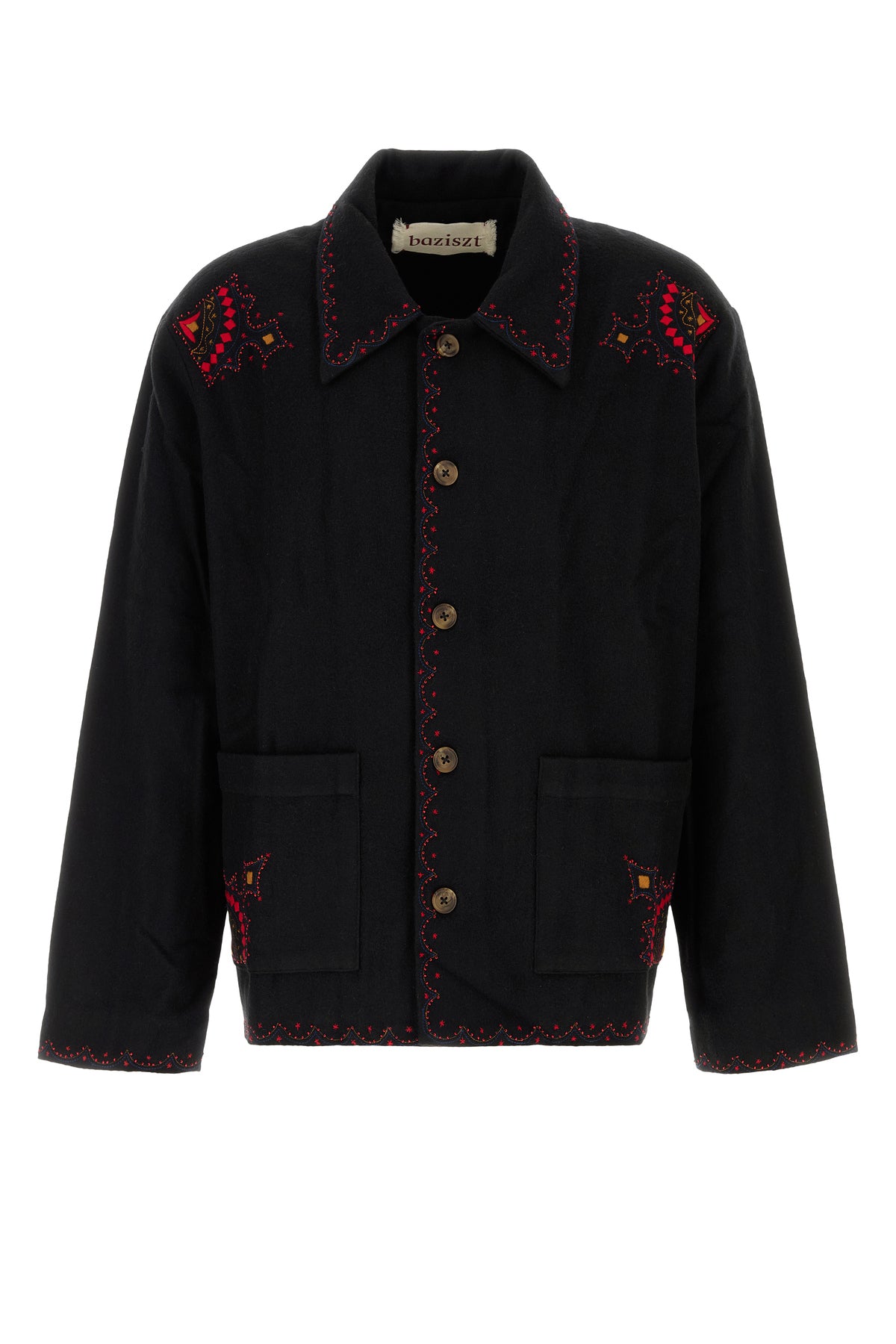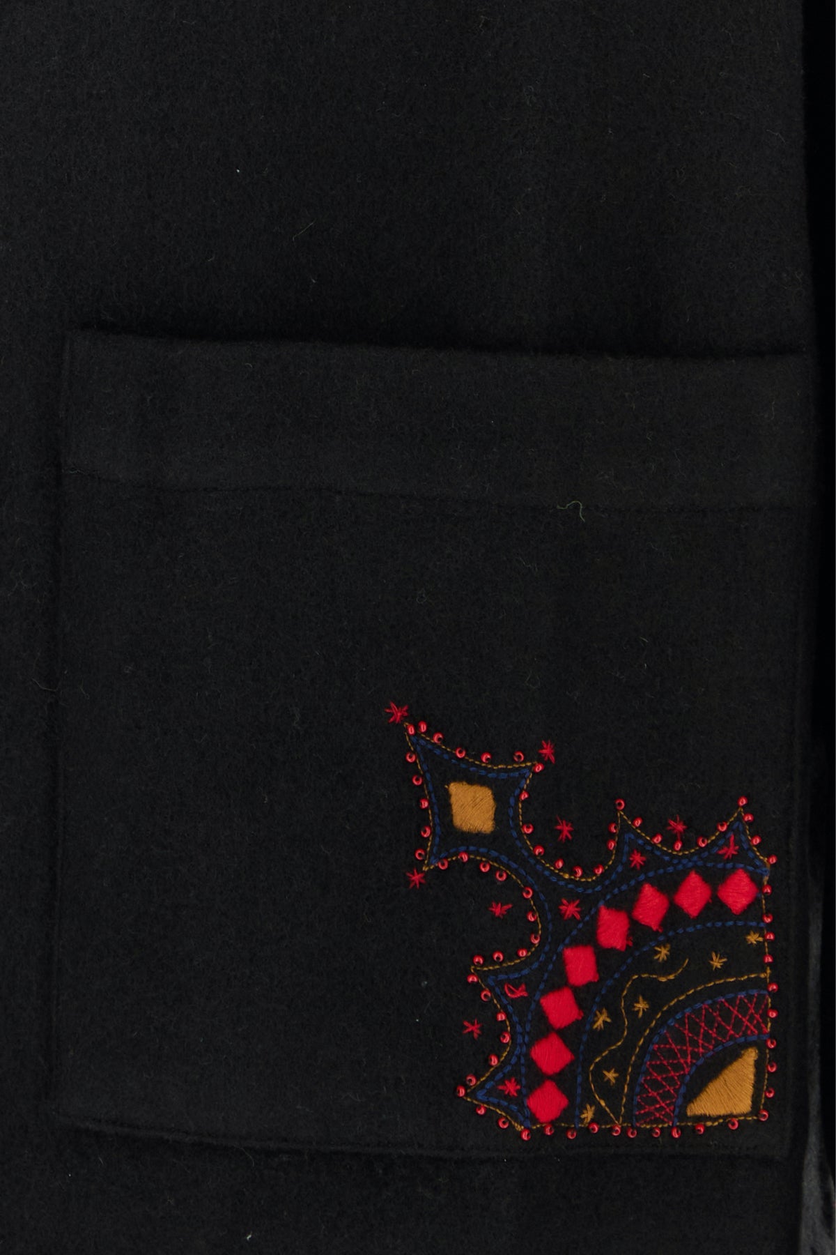 Jacket realized in felt characterized by peculiar embroidery with beads at the front.