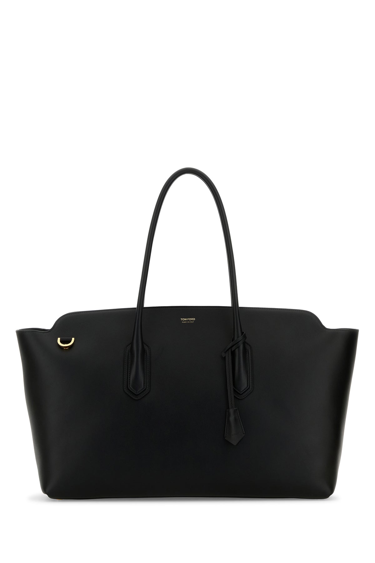 Shopping bag realized in slightly pebble leather characterized by laminated printed logo at the front.