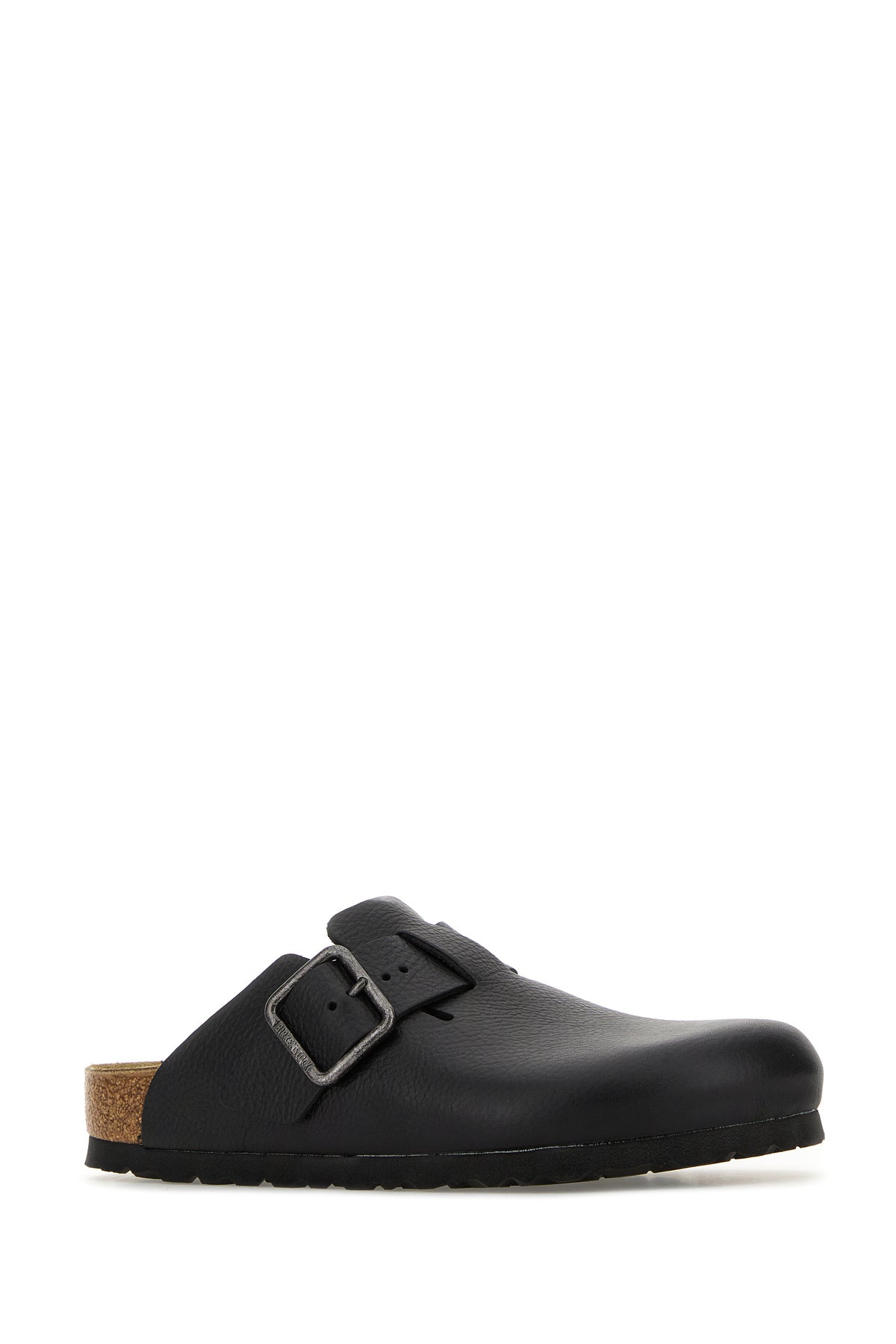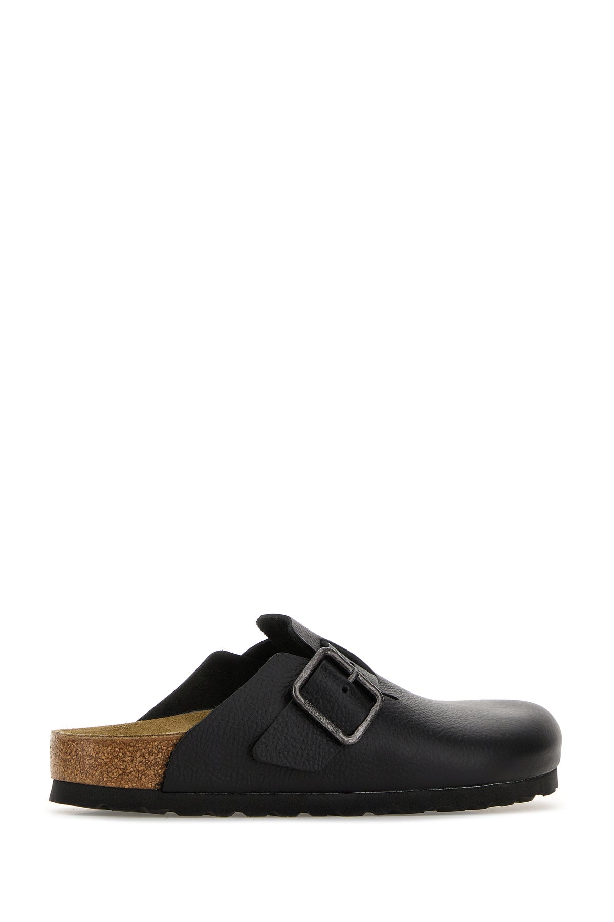 Slippers realized in pebble leather characterized by adjustable strap with vintage-effect metal buckle on the instep.