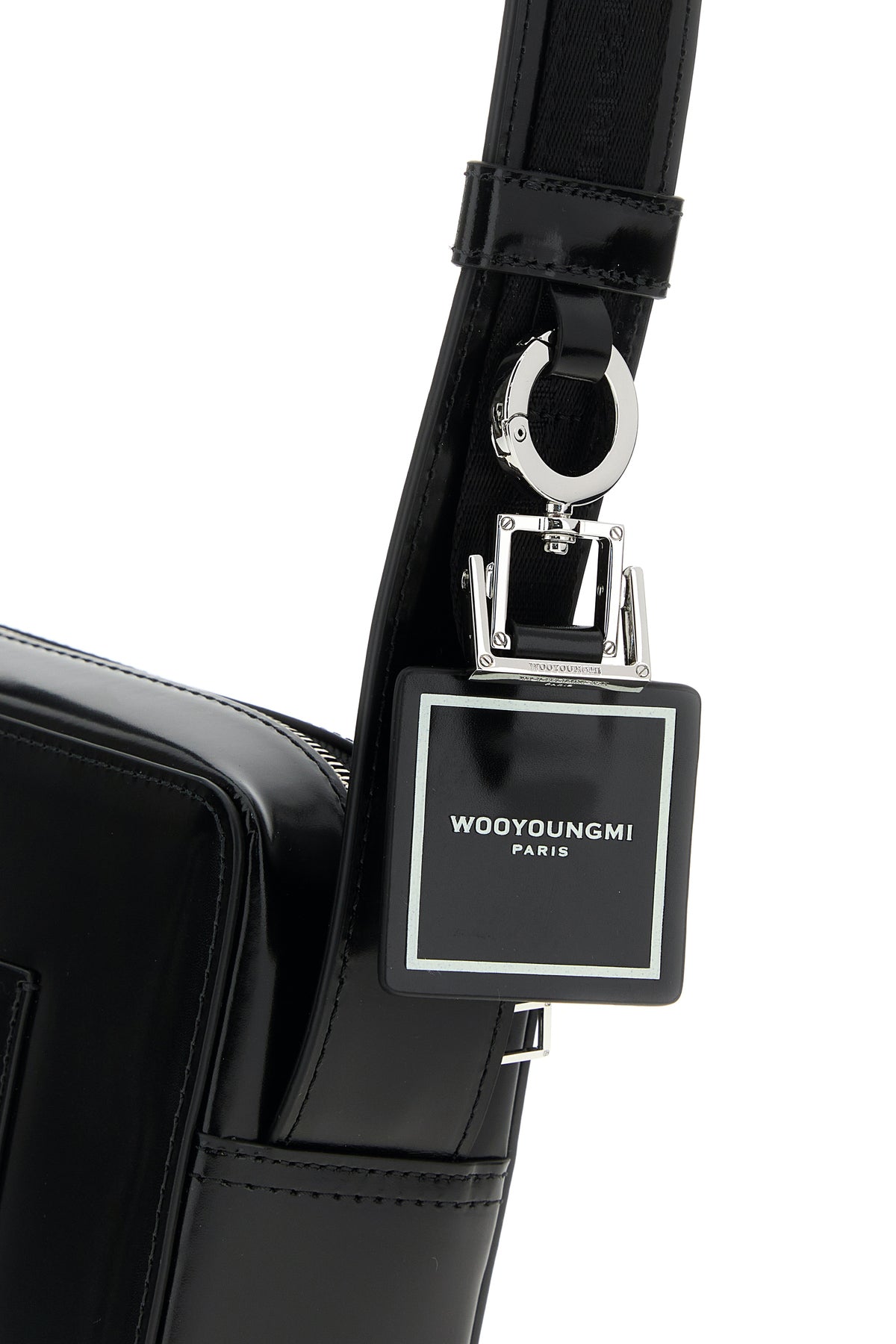 Crossbody bag realized in polished-finish smooth leather characterized by printed logo at the front enriched by metal lettering logo at the back and detachable logoed accessory on the shoulder strap.