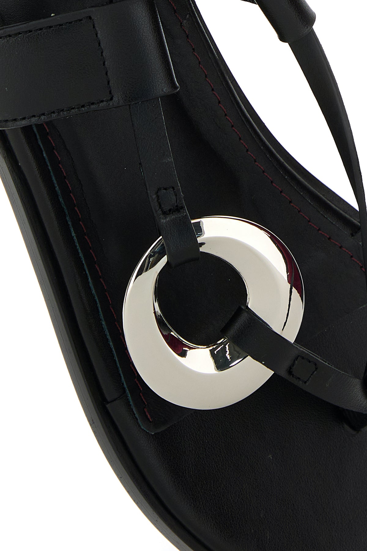 Thong sandals realized in bovine leather enriched by metal detail on the instep.