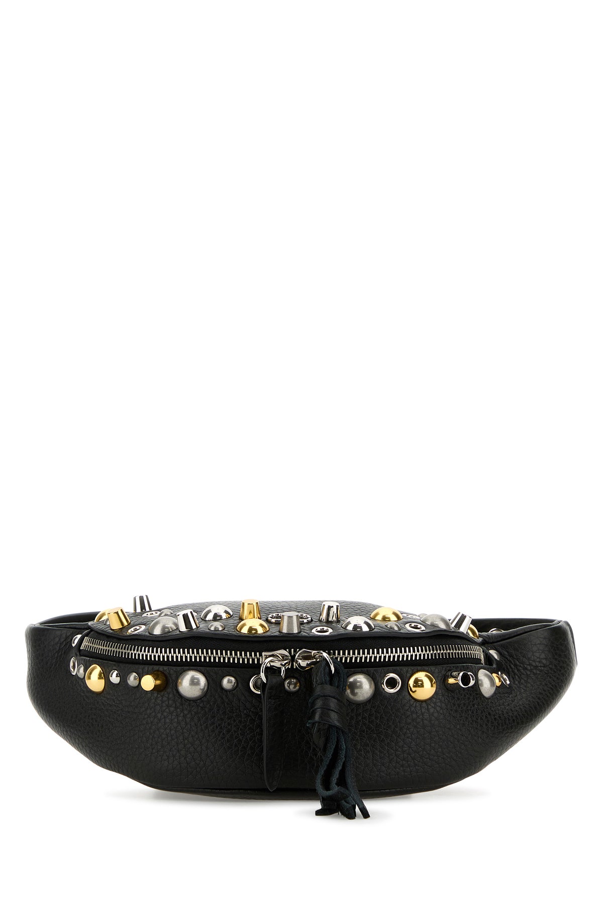 Belt bag realized in pebble calf leather enriched by VLogo Signature metal detail at the top and metal studs at the front and at the top.