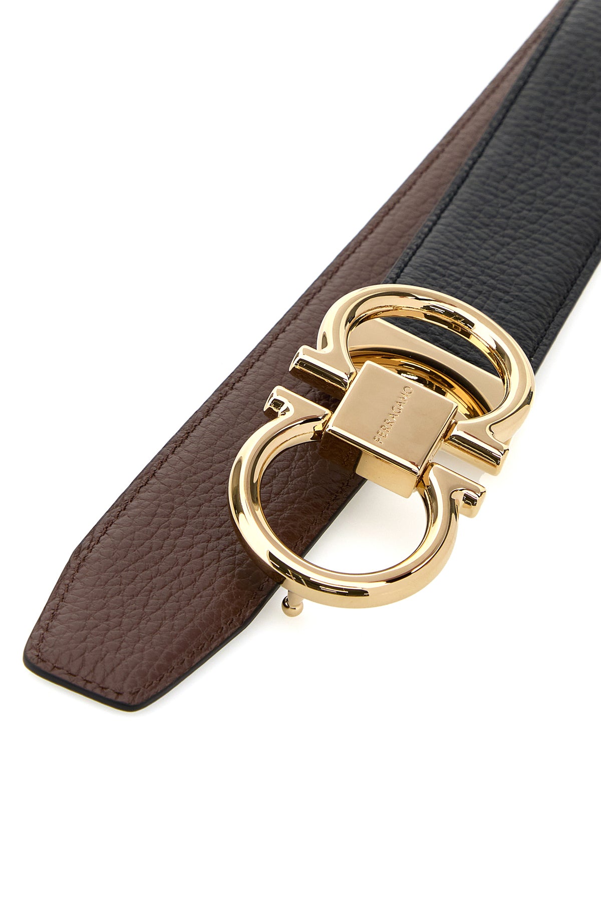 Belt realized in pebble calf leather enriched by metal Gancini buckle.