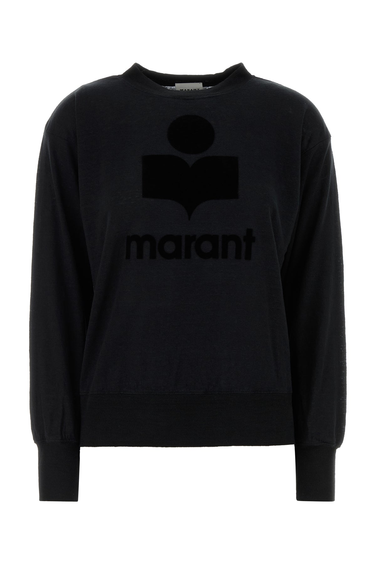 Long-sleeves t-shirt realized in pure linen characterized by flocked printed logo at the front.