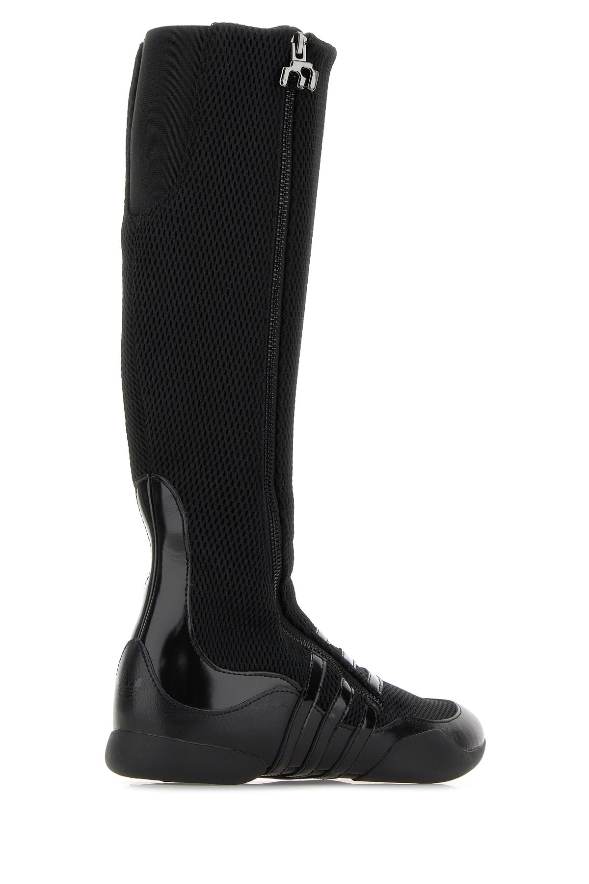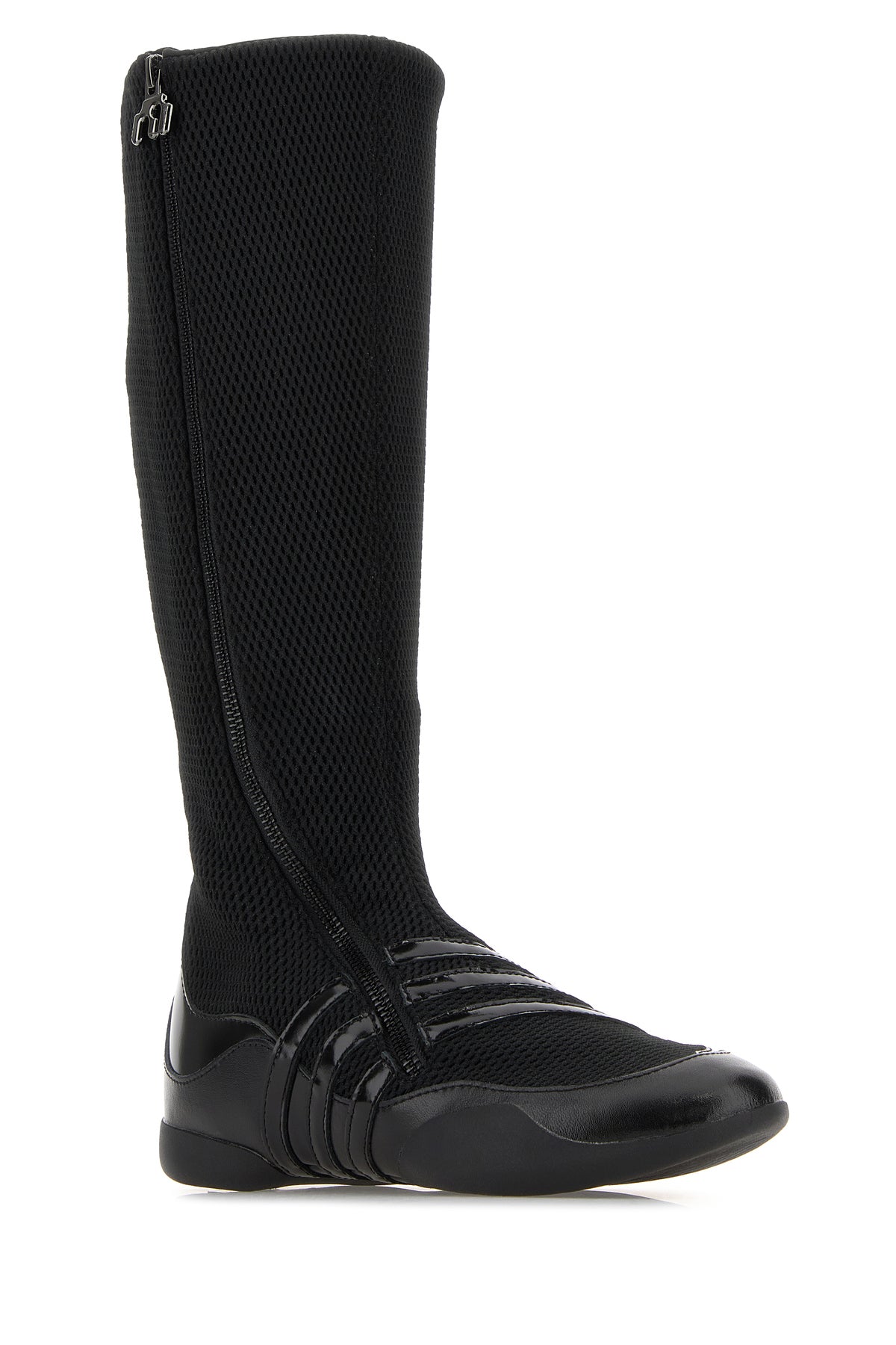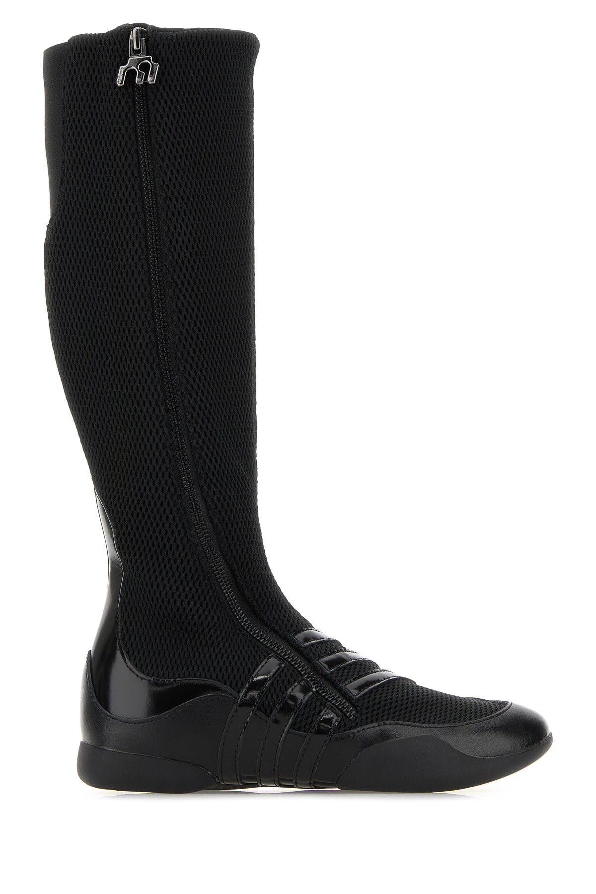 Boots realized in mesh and polished-finish leather characterized by tonal printed logo at the back enriched by tonal bands on the instep.