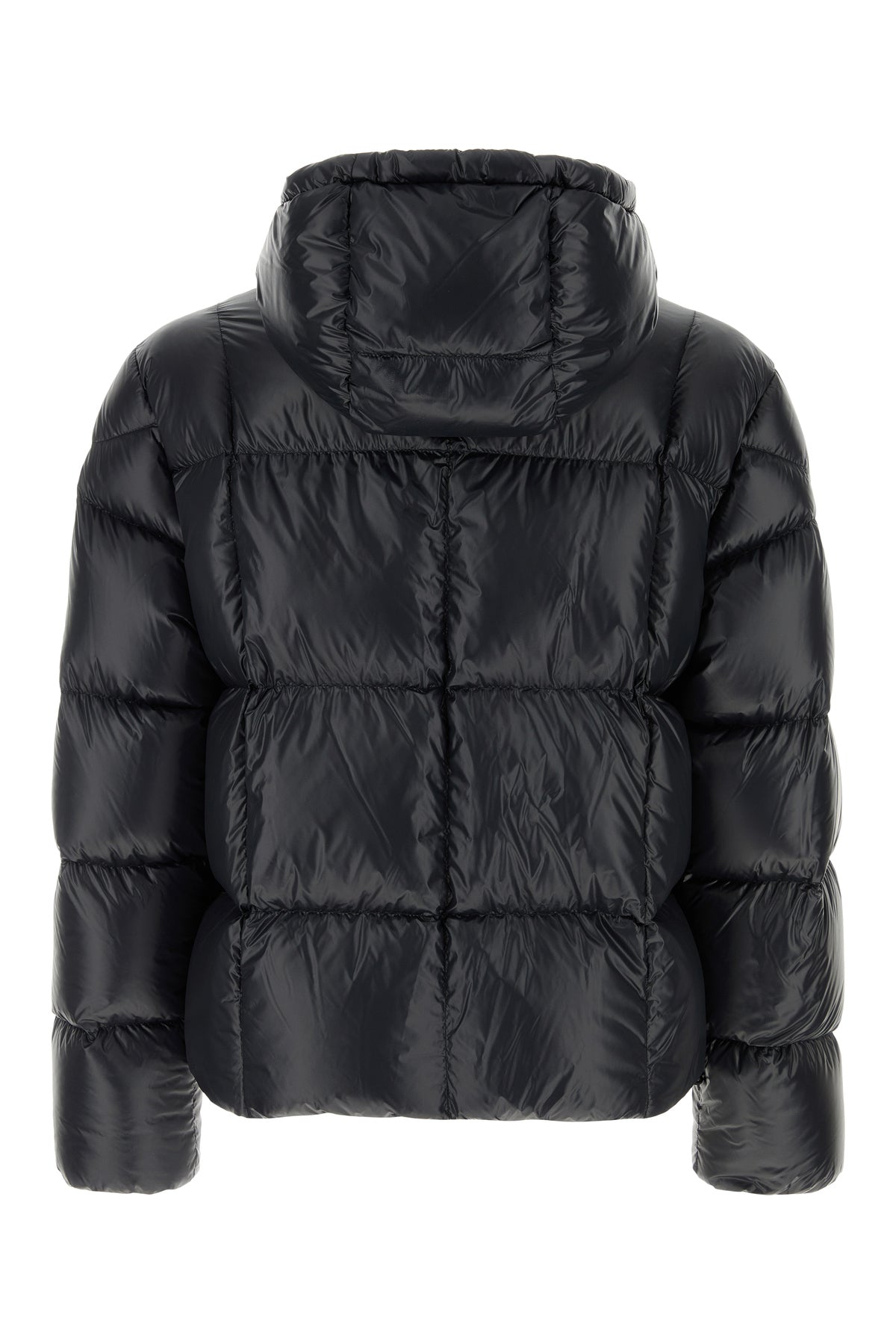 Down jacket realized in quilted nylon enriched by contrasting logoed patch on the sleeve.