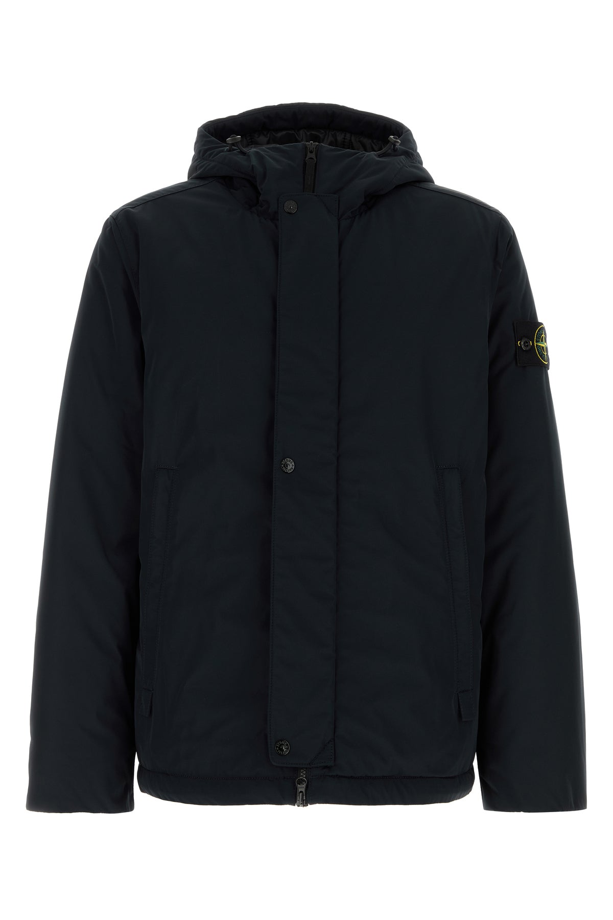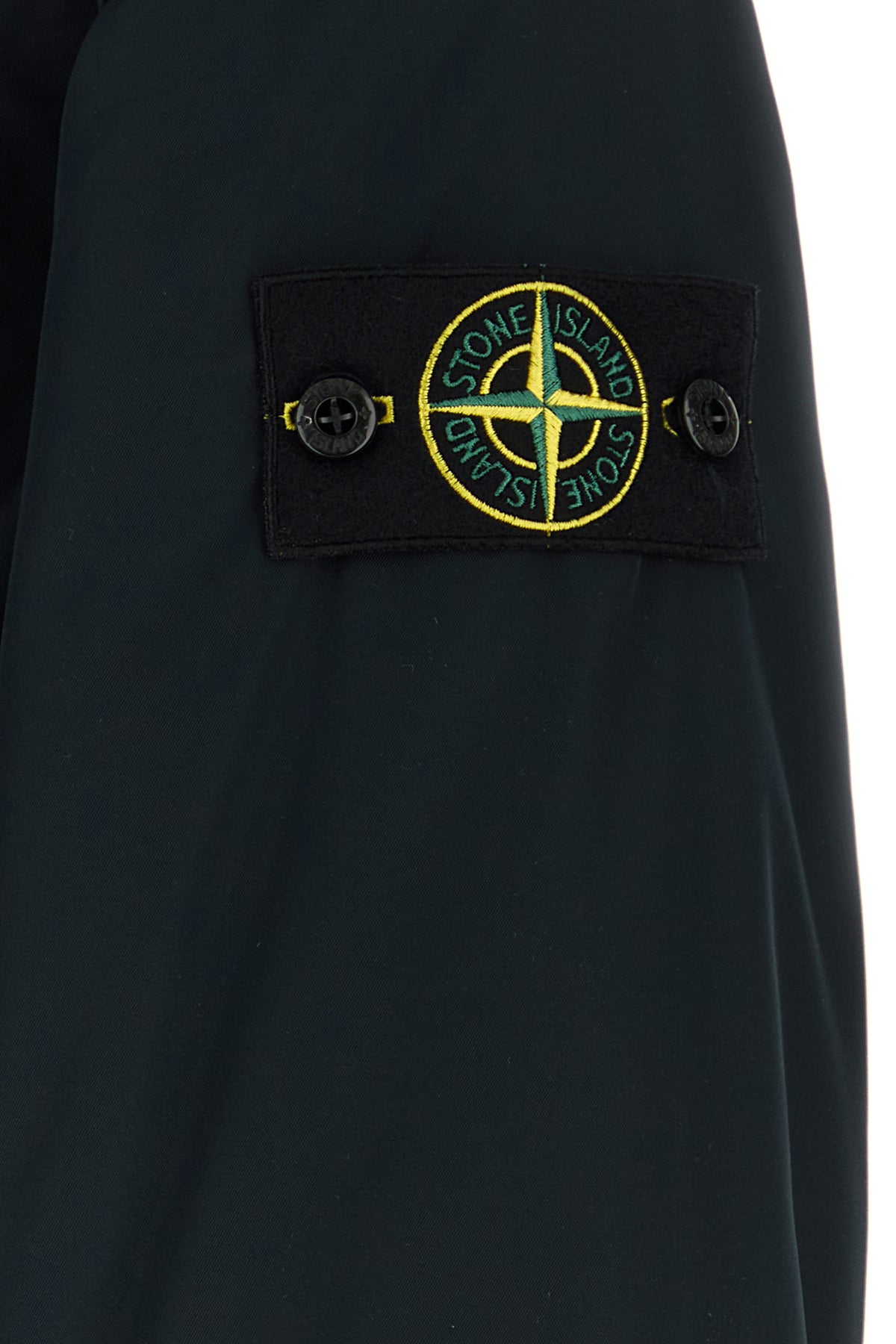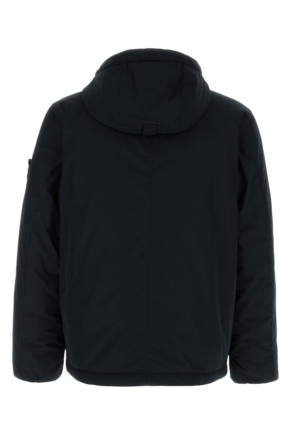 Padded jacket realized in polyester enriched by detachable logoed label on the sleeve.