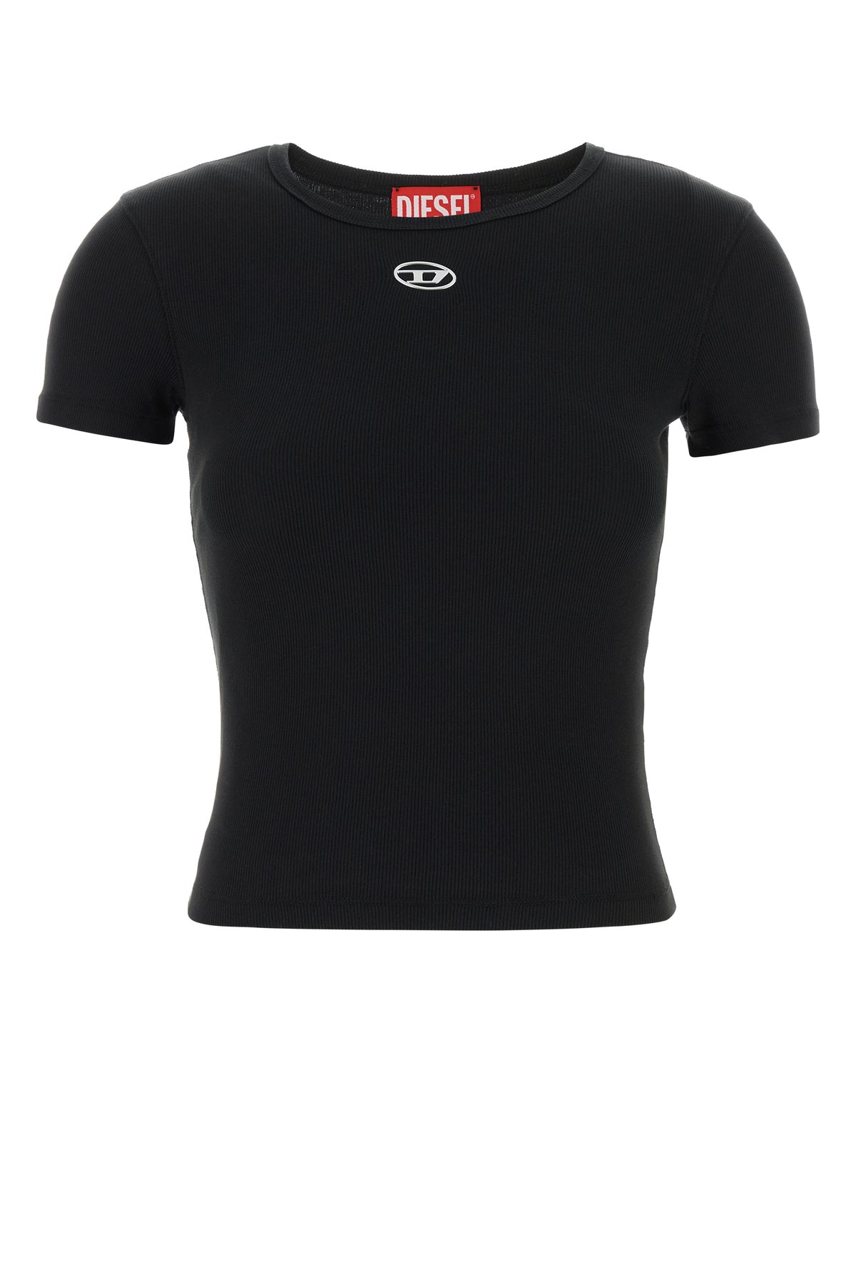 T-shirt realized in stretch cotton enriched by D metal detail on the chest.