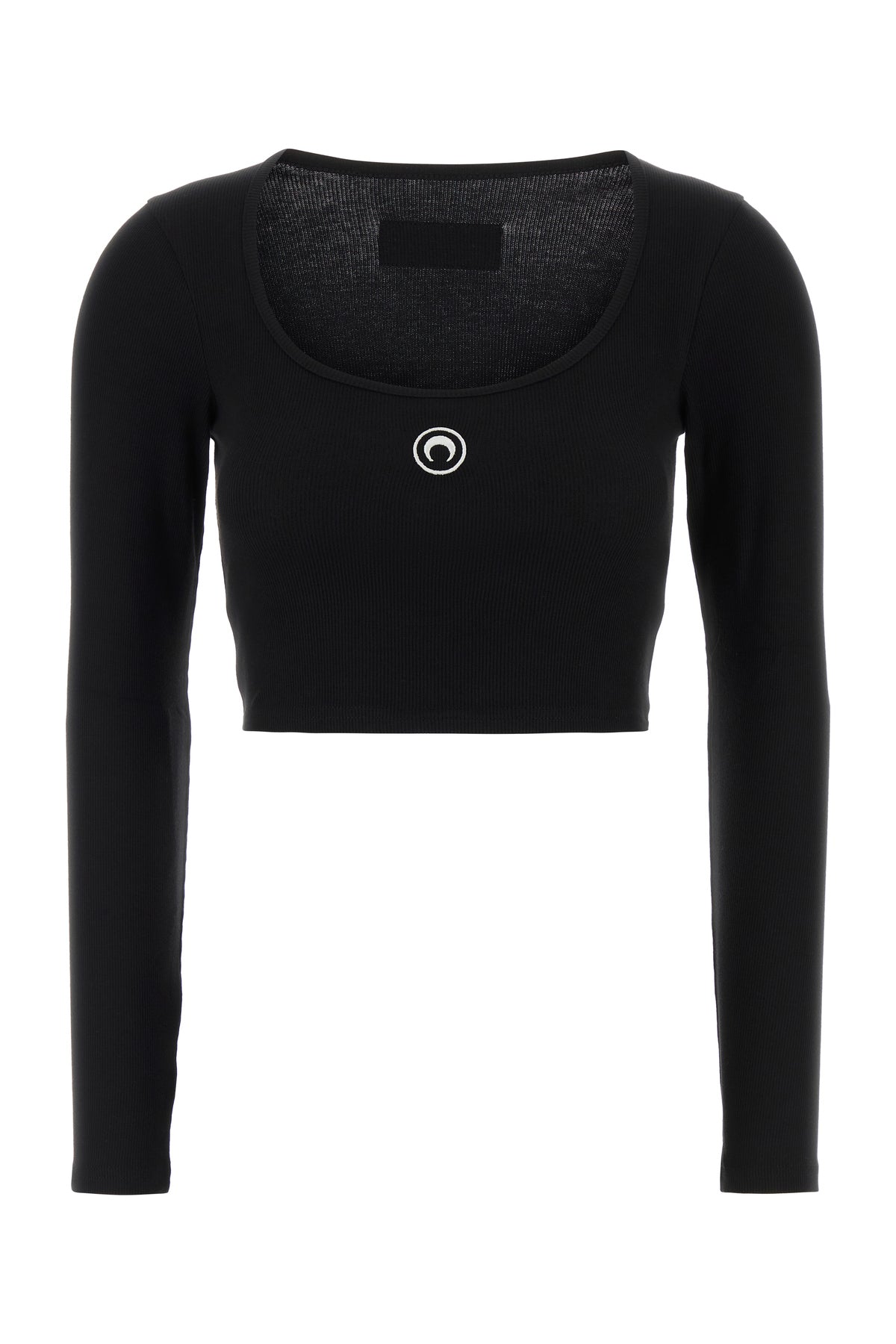 Long-sleeves short-cut t-shirt realized in stretch cotton characterized by Moon embroidery on the chest.