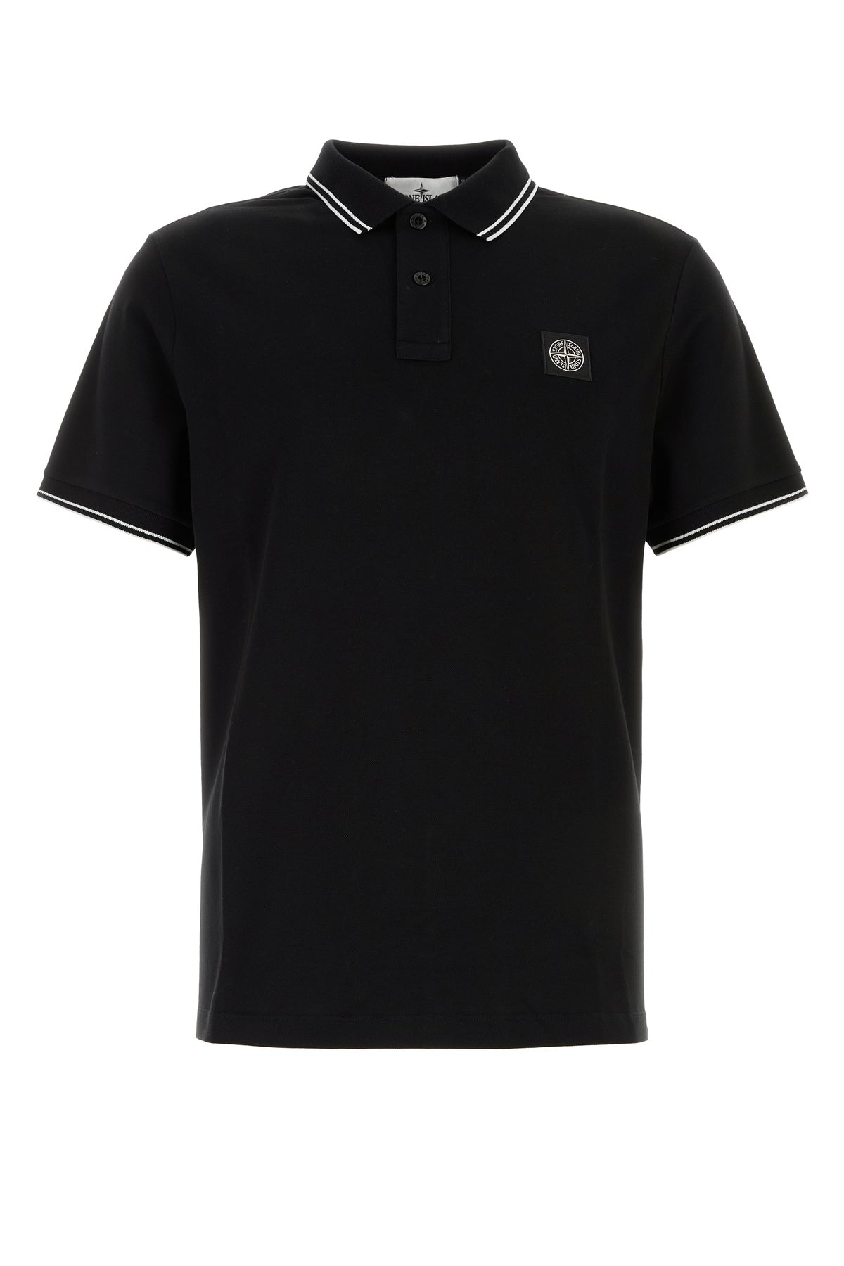 Black stretch piquet polo shirt