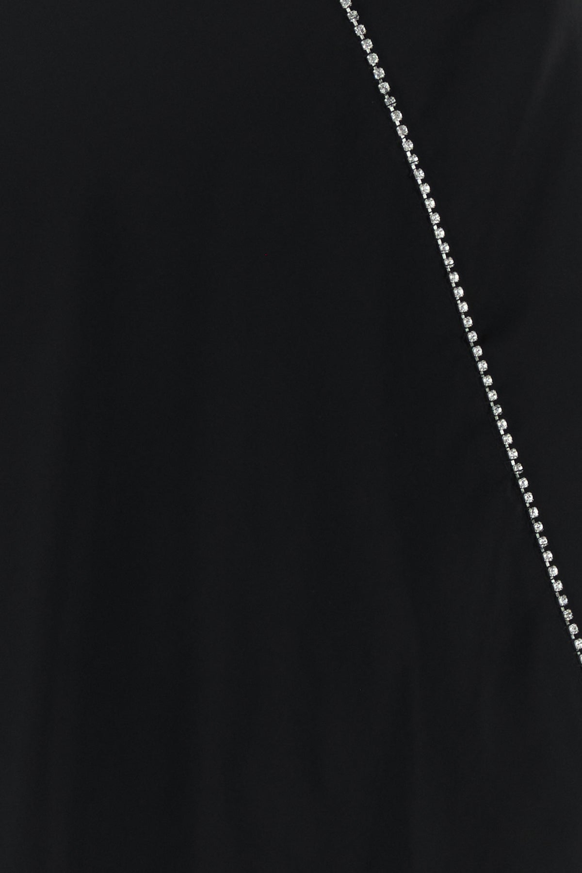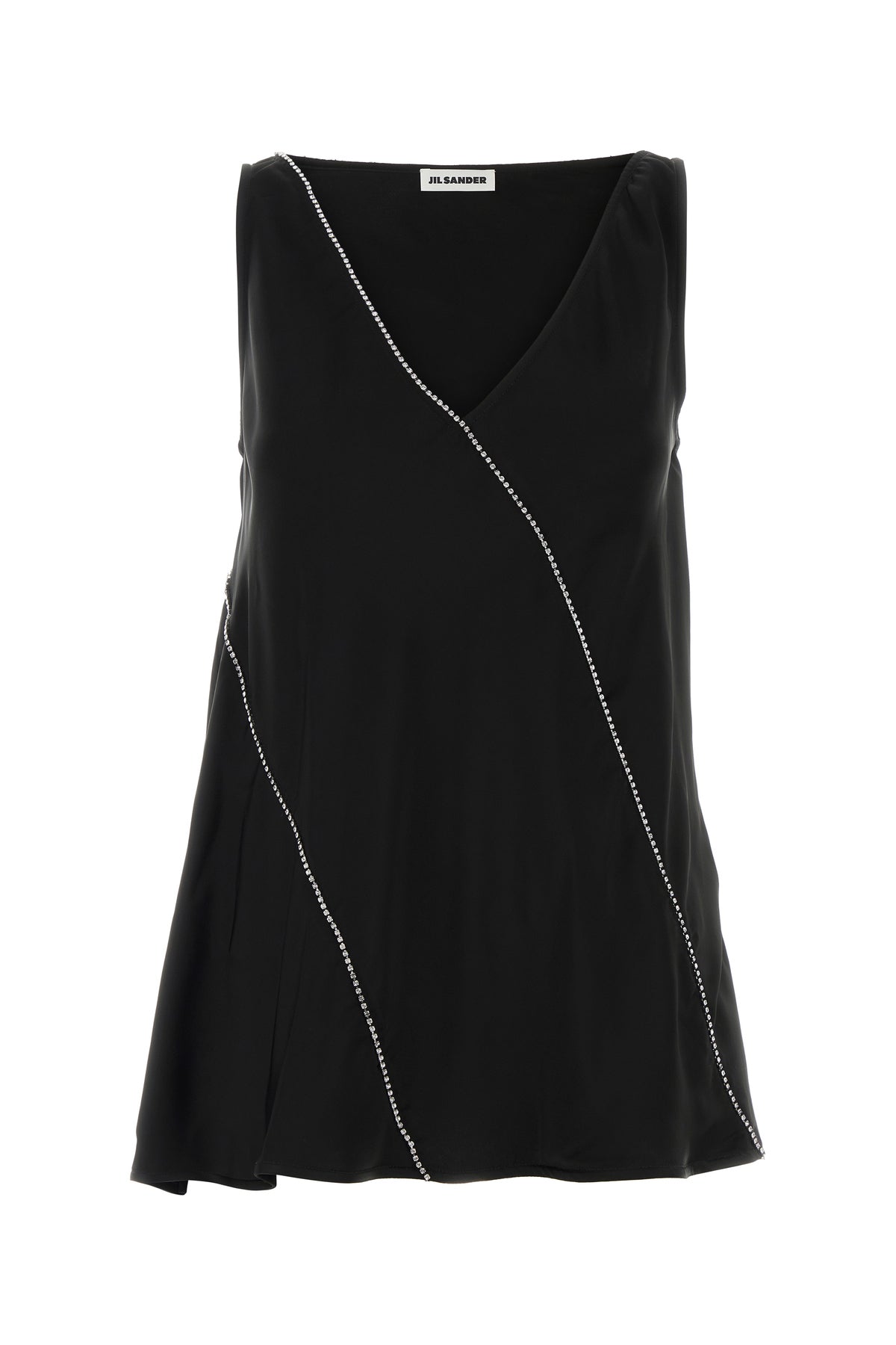 Flared top realized in viscose enriched by rhinestones inserts at the front and at the back.