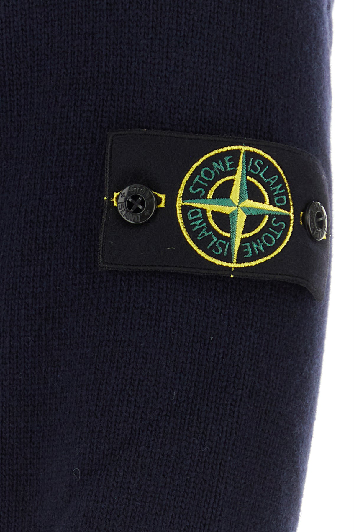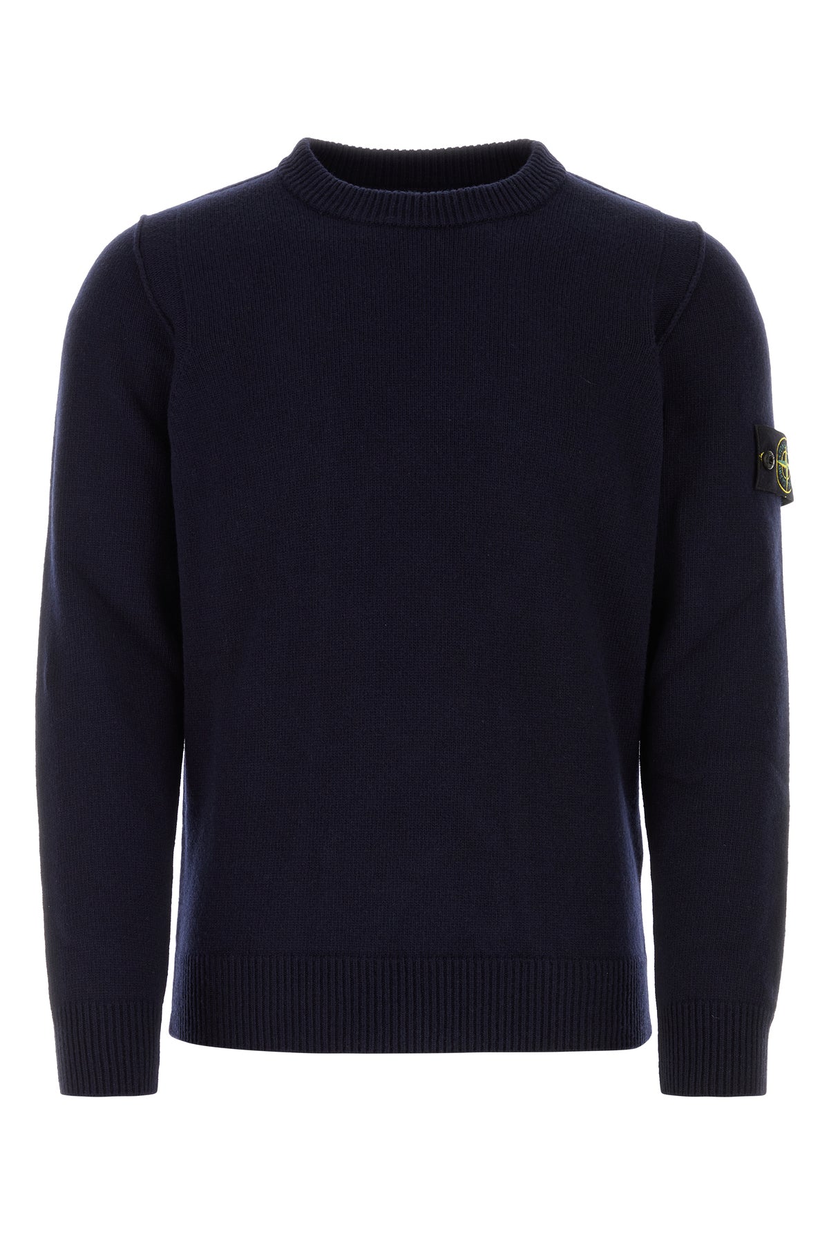 Sweater realized in wool blend enriched by detachable logoed patch on the sleeve.