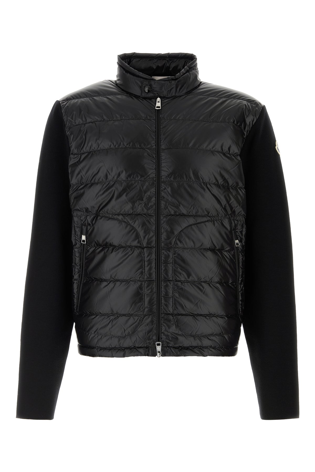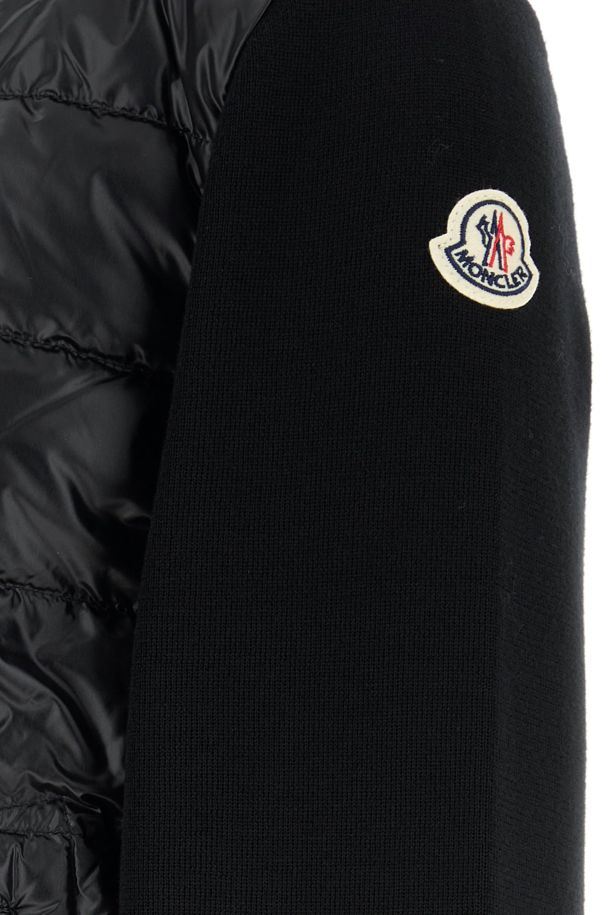 Cardigan realized in pure virgin wool enriched by contrasting logoed patch on the sleeve.