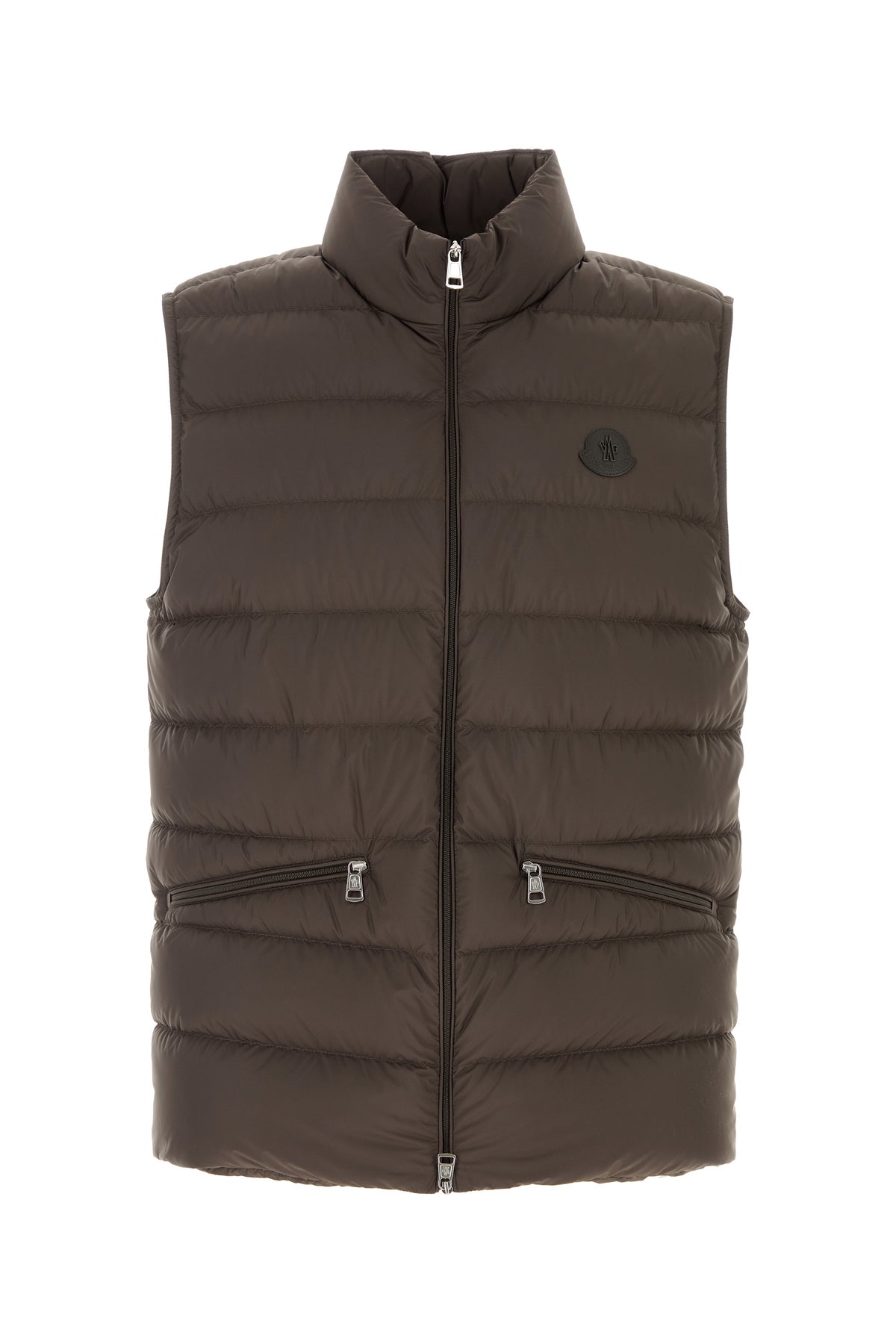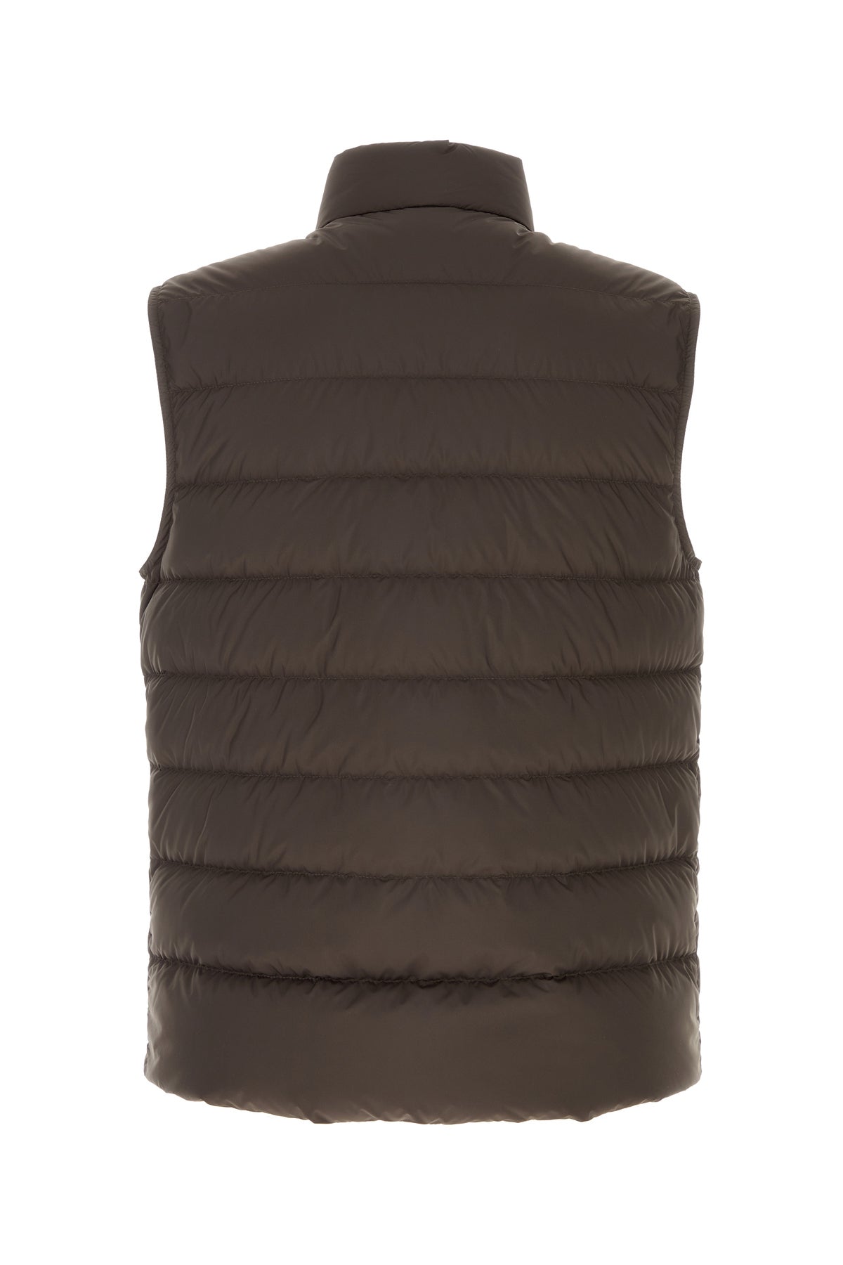 Sleeveless down jacket realized in quilted polyester enriched by leather logoed patch on the chest.
