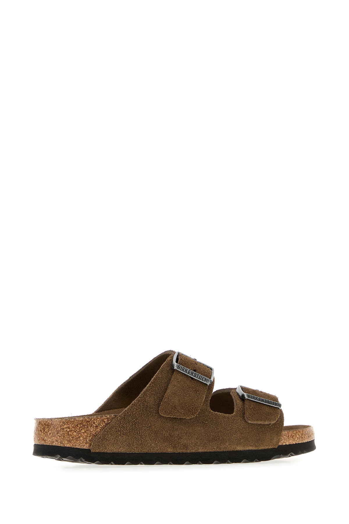 Slippers realized in pebble suede characterized by printed logo on the side.