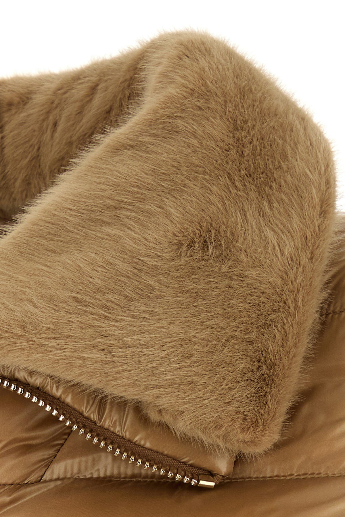 Down jacket realized in quilted nylon characterized by eco fur collar.