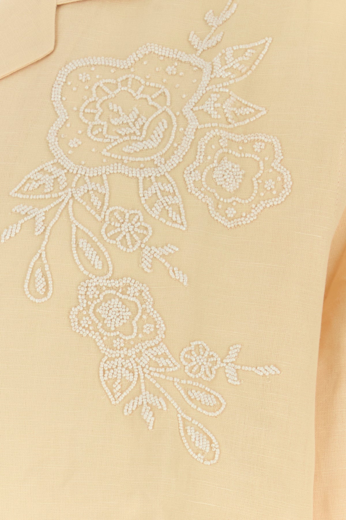 Shirt realized in pure cotton characterized by embroidered logo on the side enriched by floral embellishments with beads at the top.