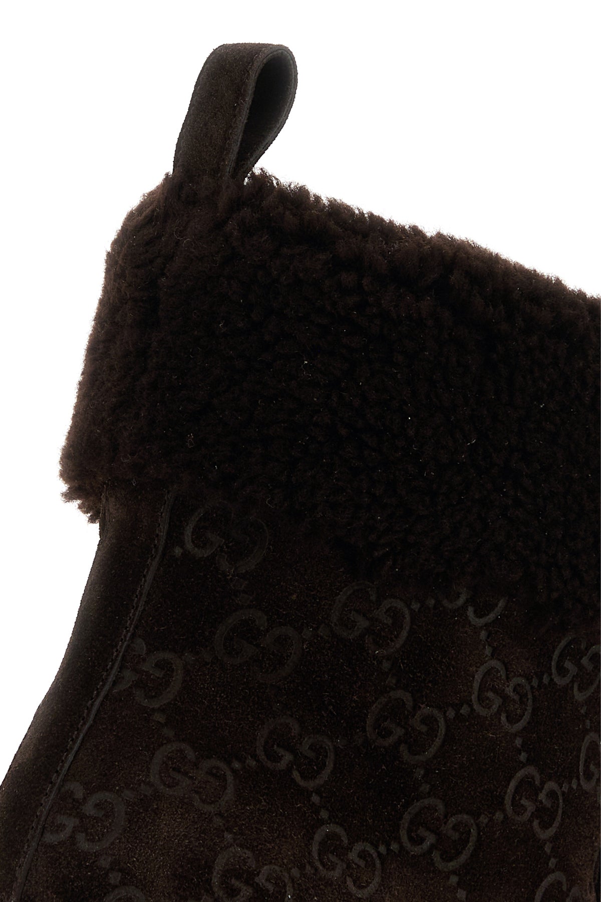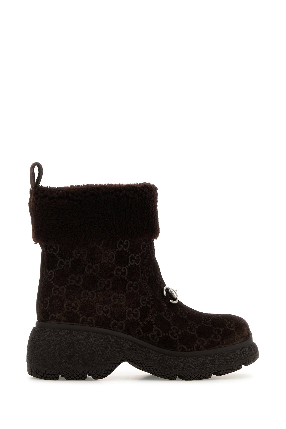 Ankle boots realized in suede characterized by embossed GG motif on the entire surface enriched by Horsebit metal detail on the instep.