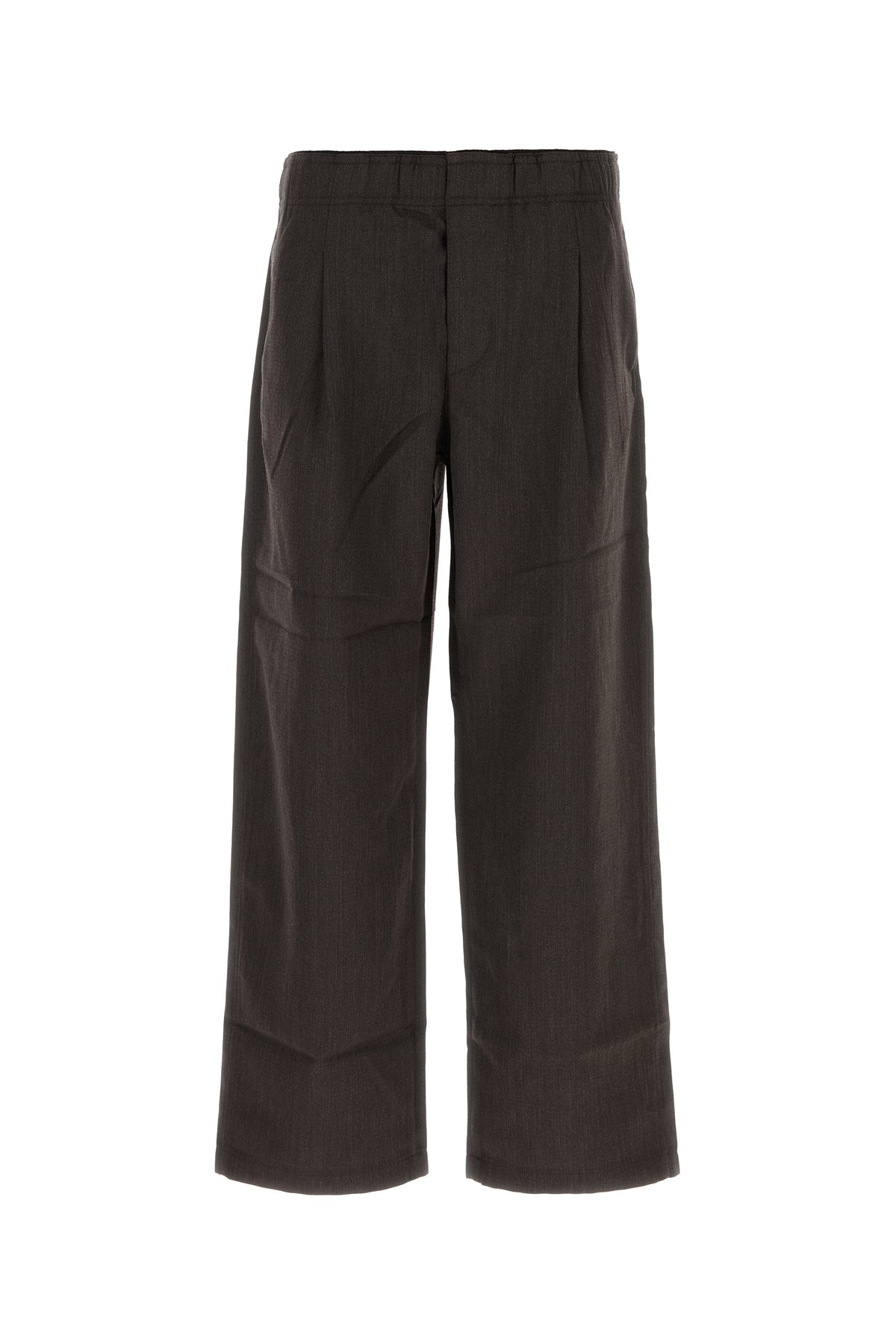 Wide-leg pant realized in pure virgin wool characterized by inverted pleats.