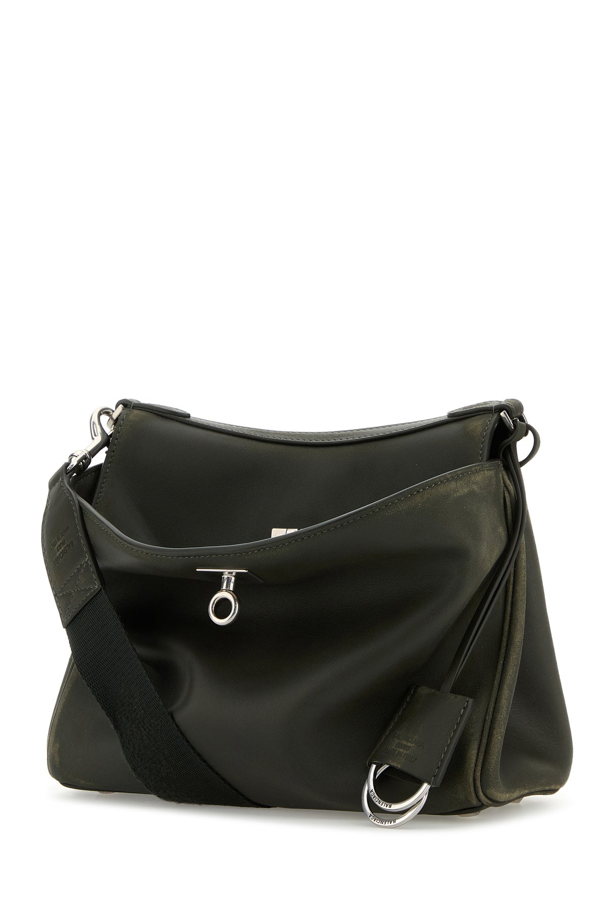 Crossbody bag realized in leather characterized by laminated printed logo at the back.