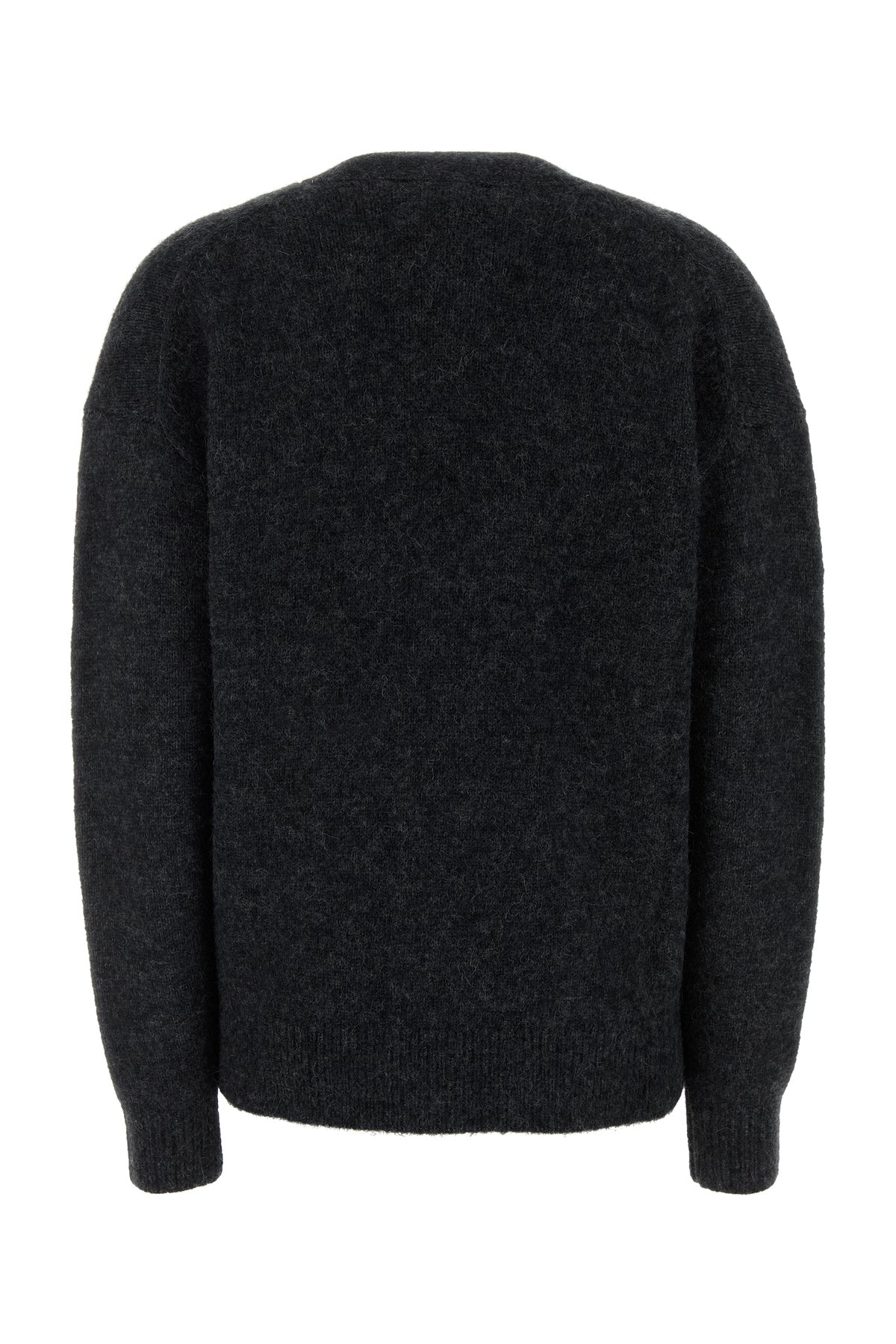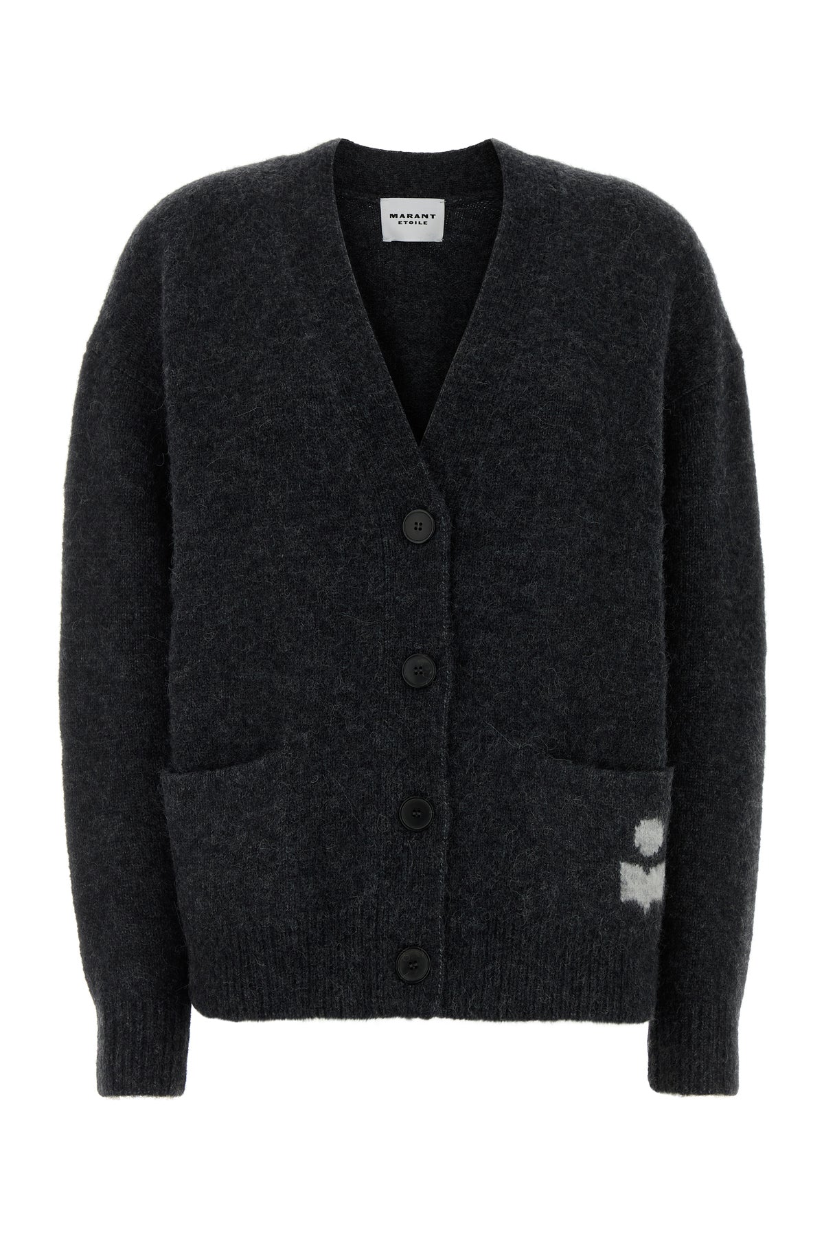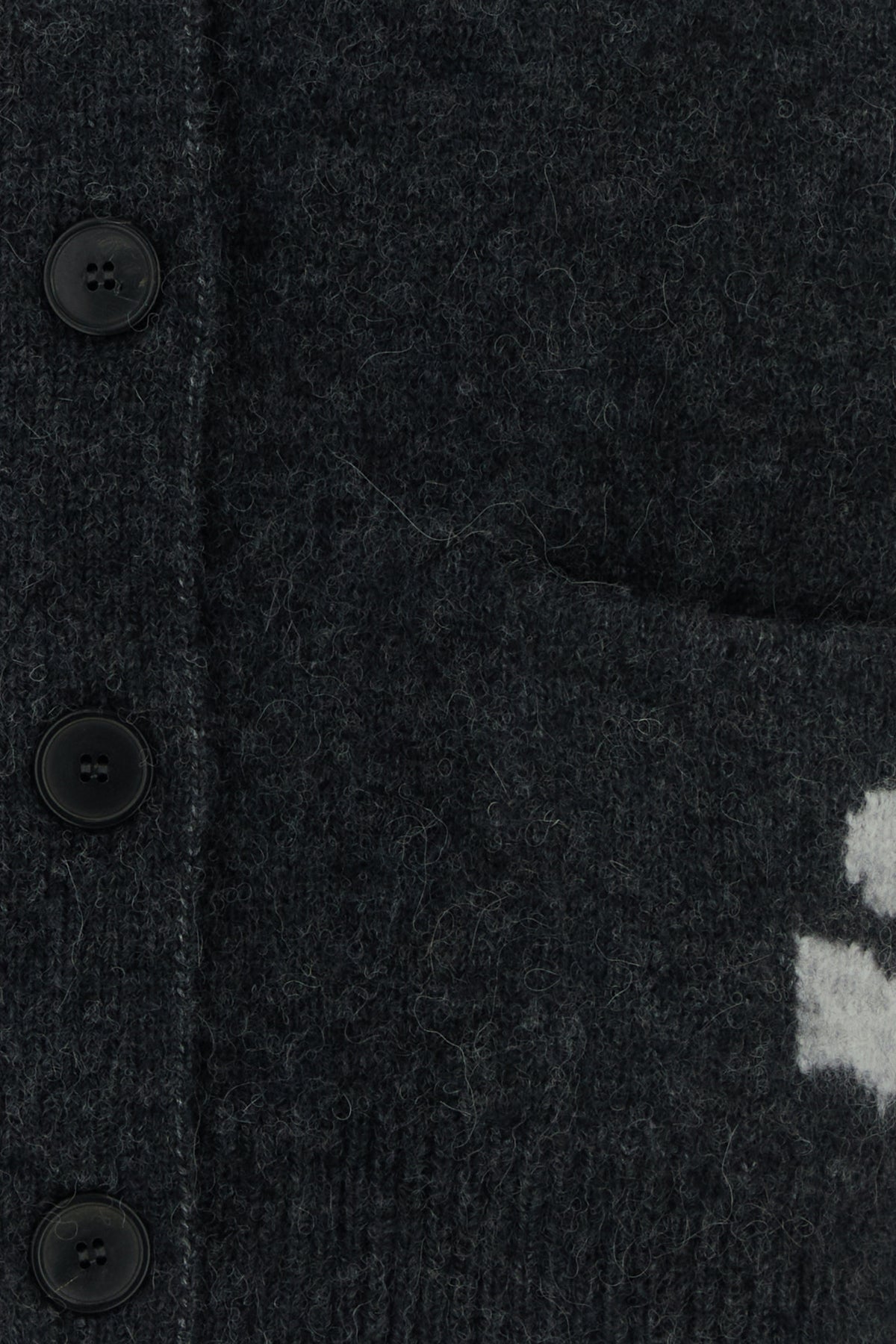 Cardigan realized in alpaca blend characterized by contrasting embroidered logo on the hemline.