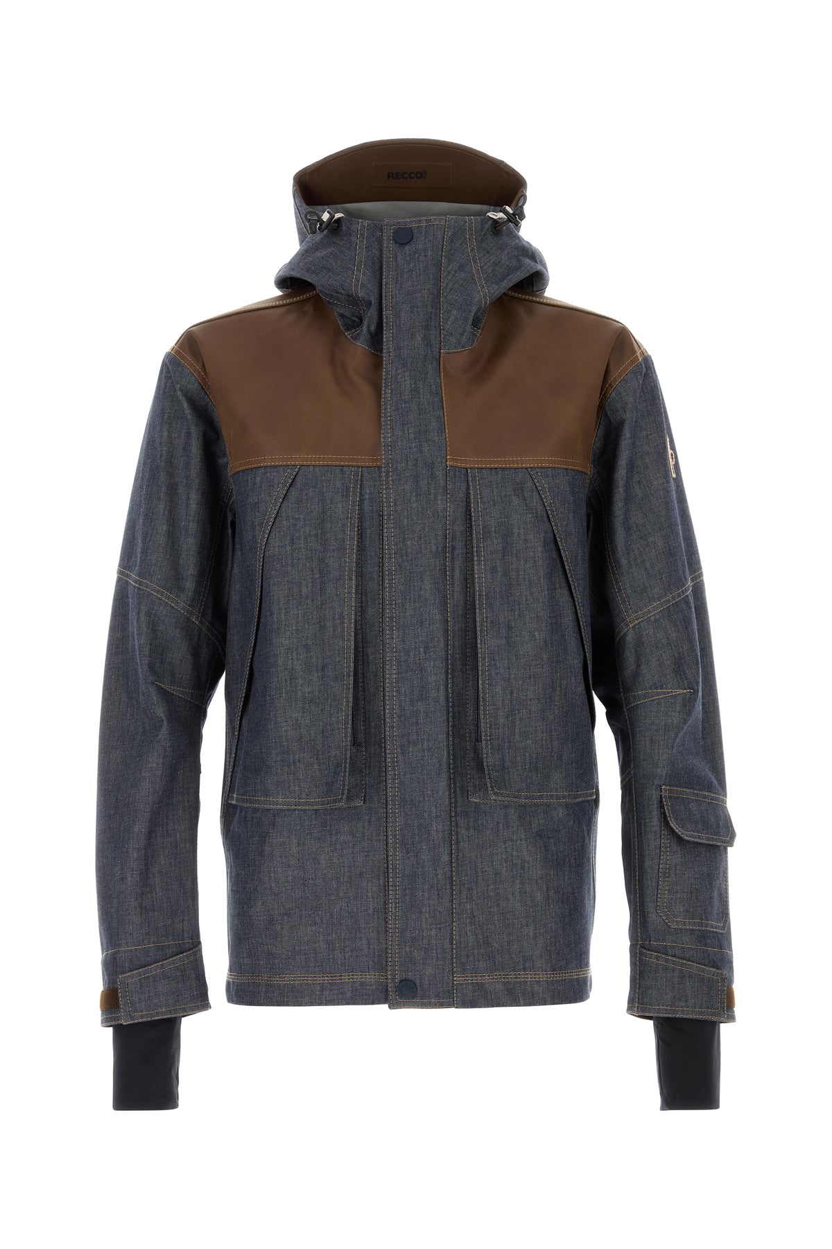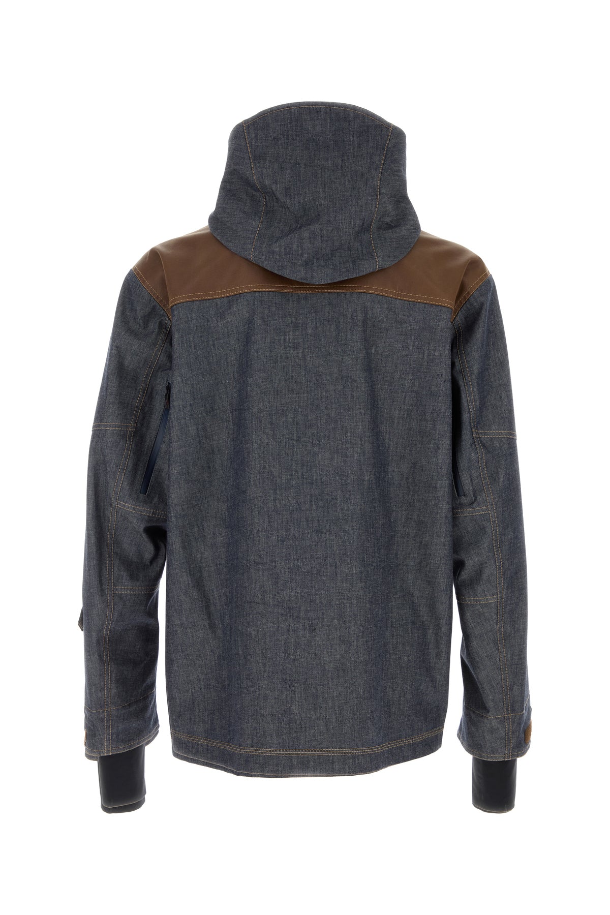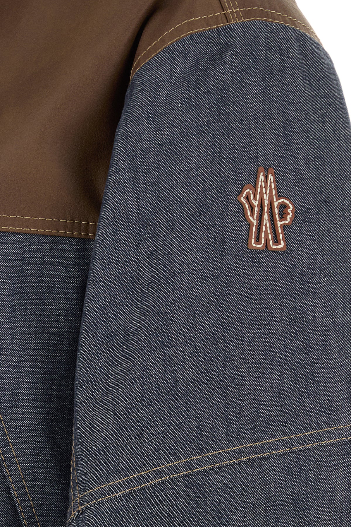 Jacket realized in cotton blend denim with synthetic leather inserts at the top enriched by contrasting logoed patch on the sleeve.