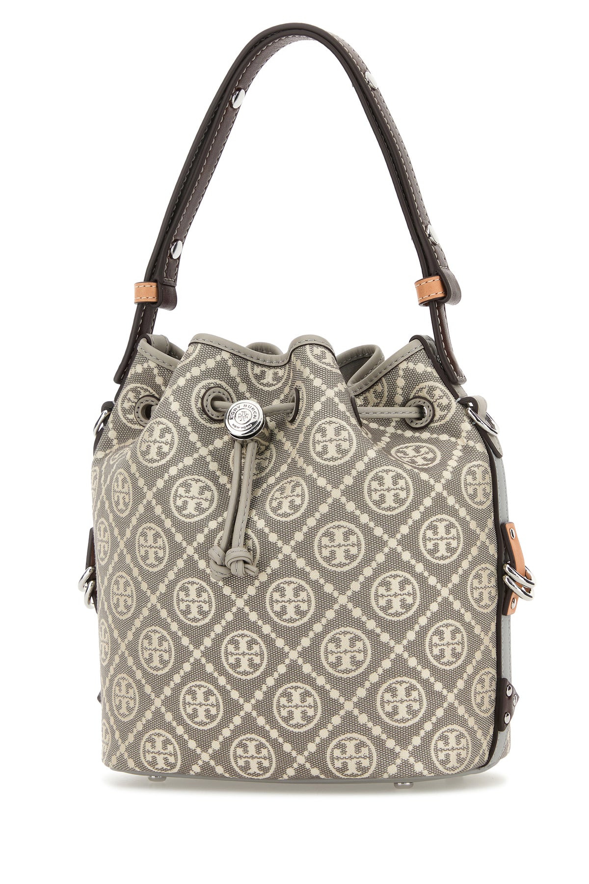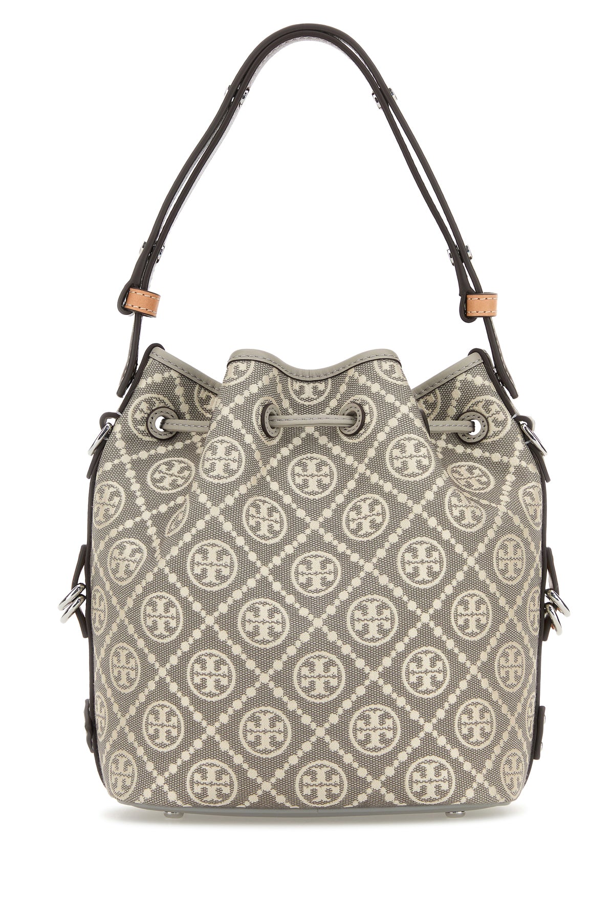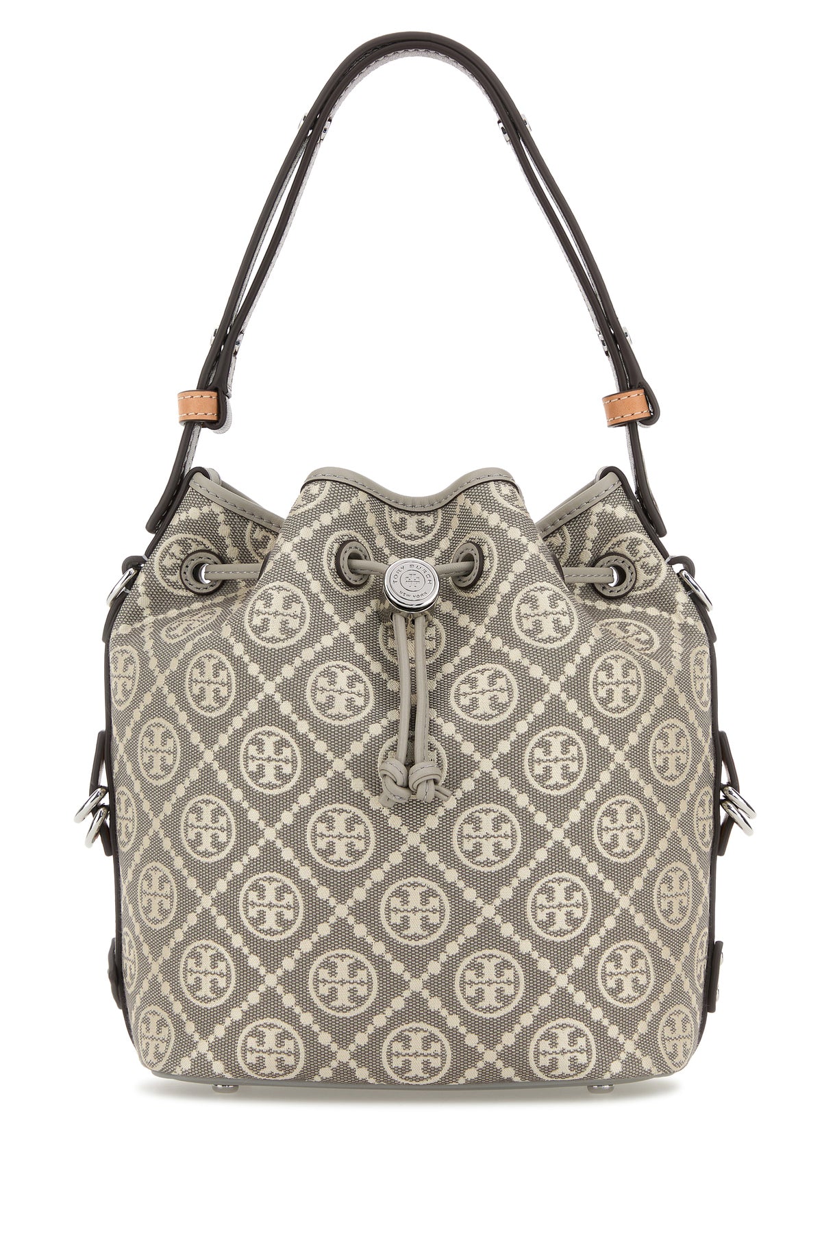 Bucket bag realized in canvas characterized by embroidered logo on the entire surface.