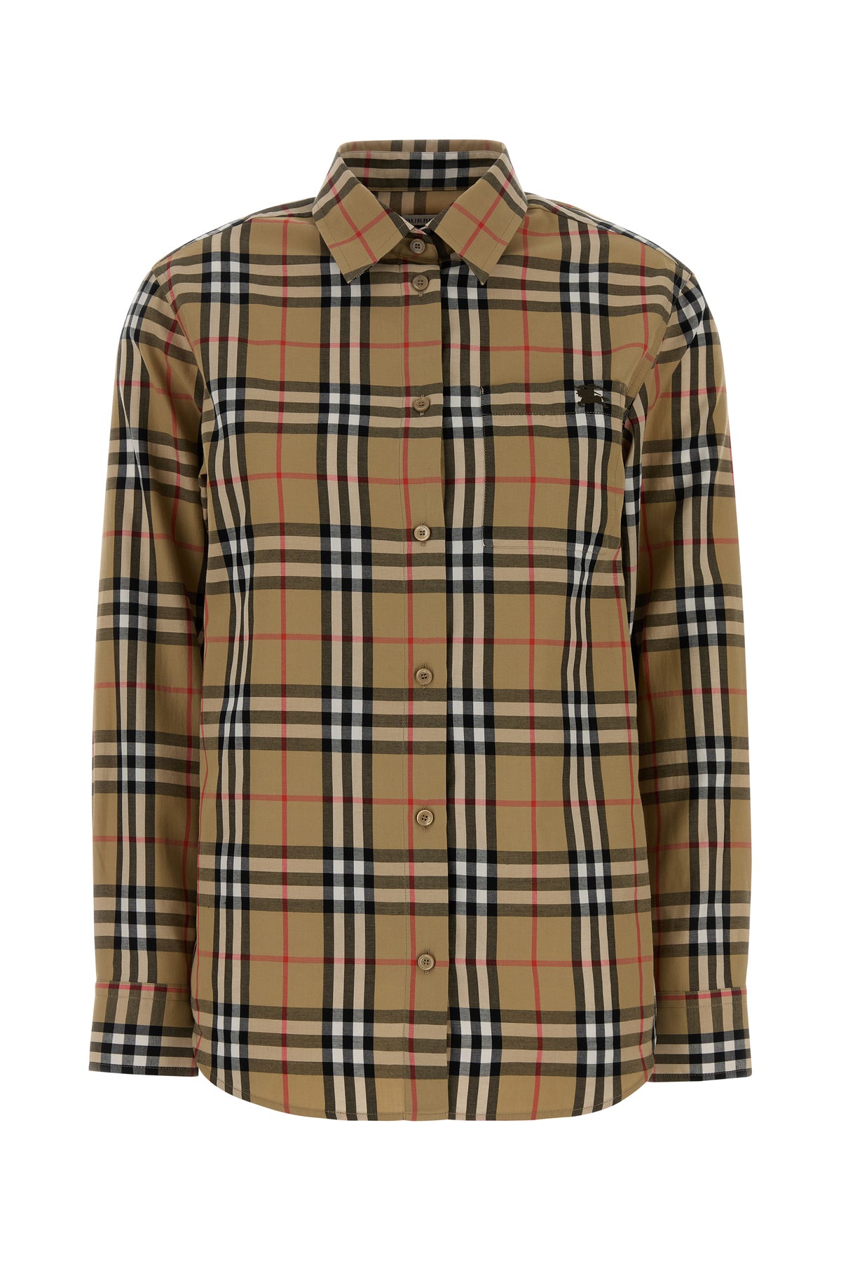 Shirt realized in pure cotton characterized by Burberry Check embroidery on the entire surface and Equestrian Knight on the chest.