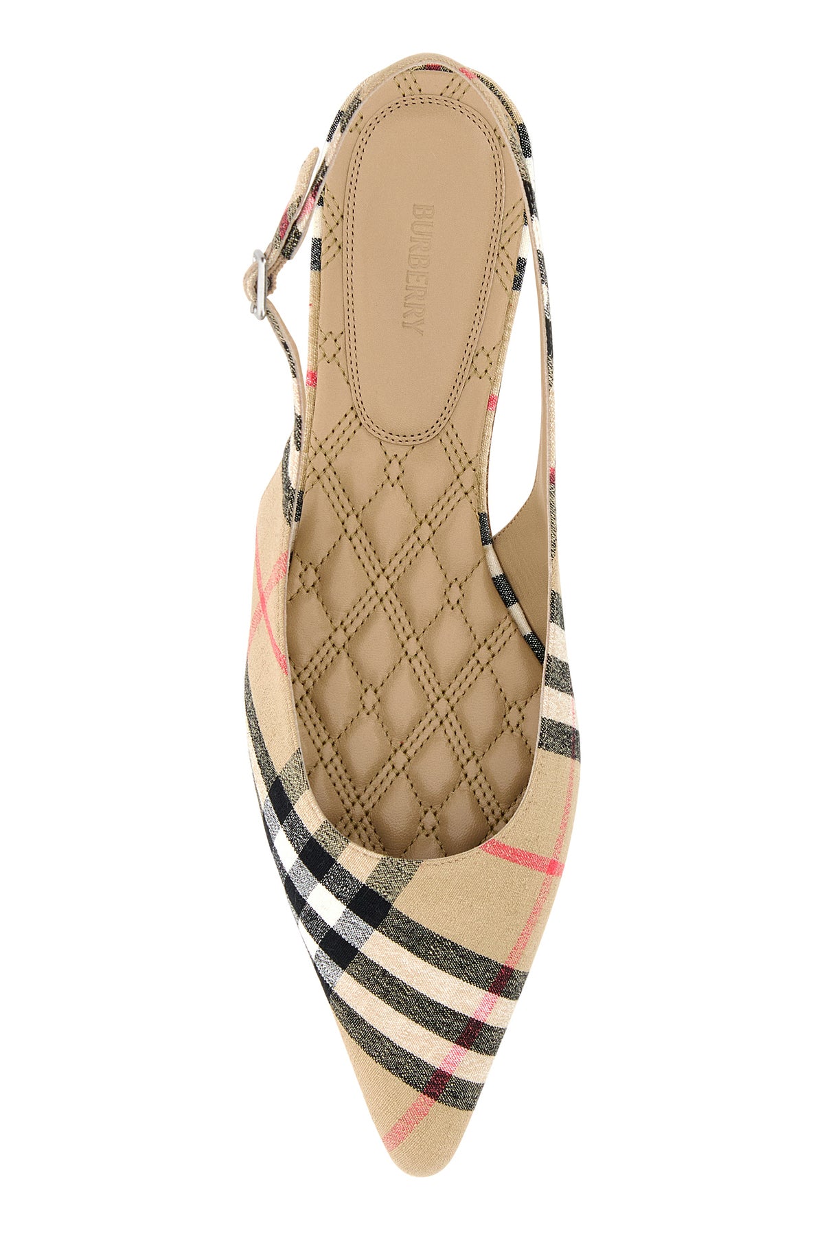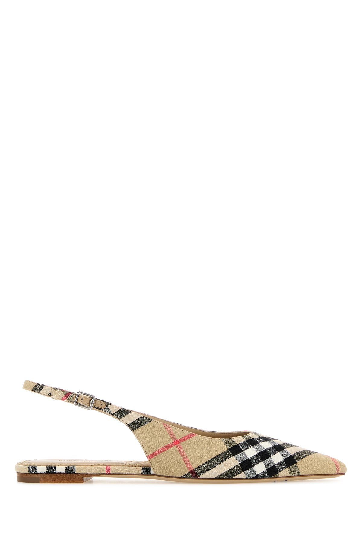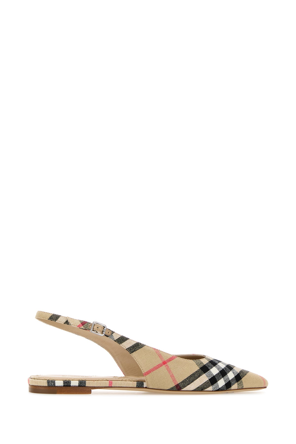 Slingback ballerinas realized in fabric characterized by Burberry Check embroidery on the entire surface.