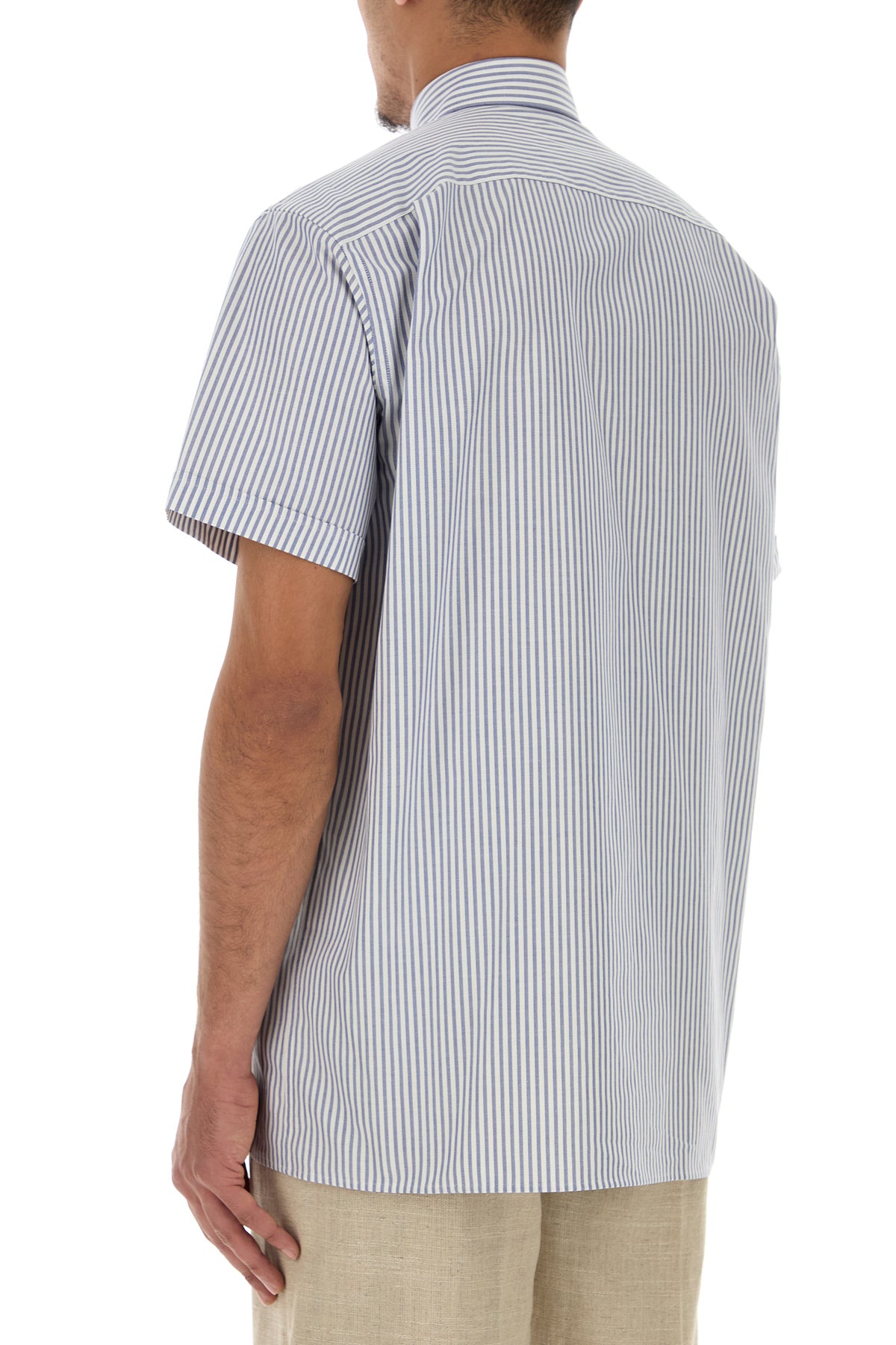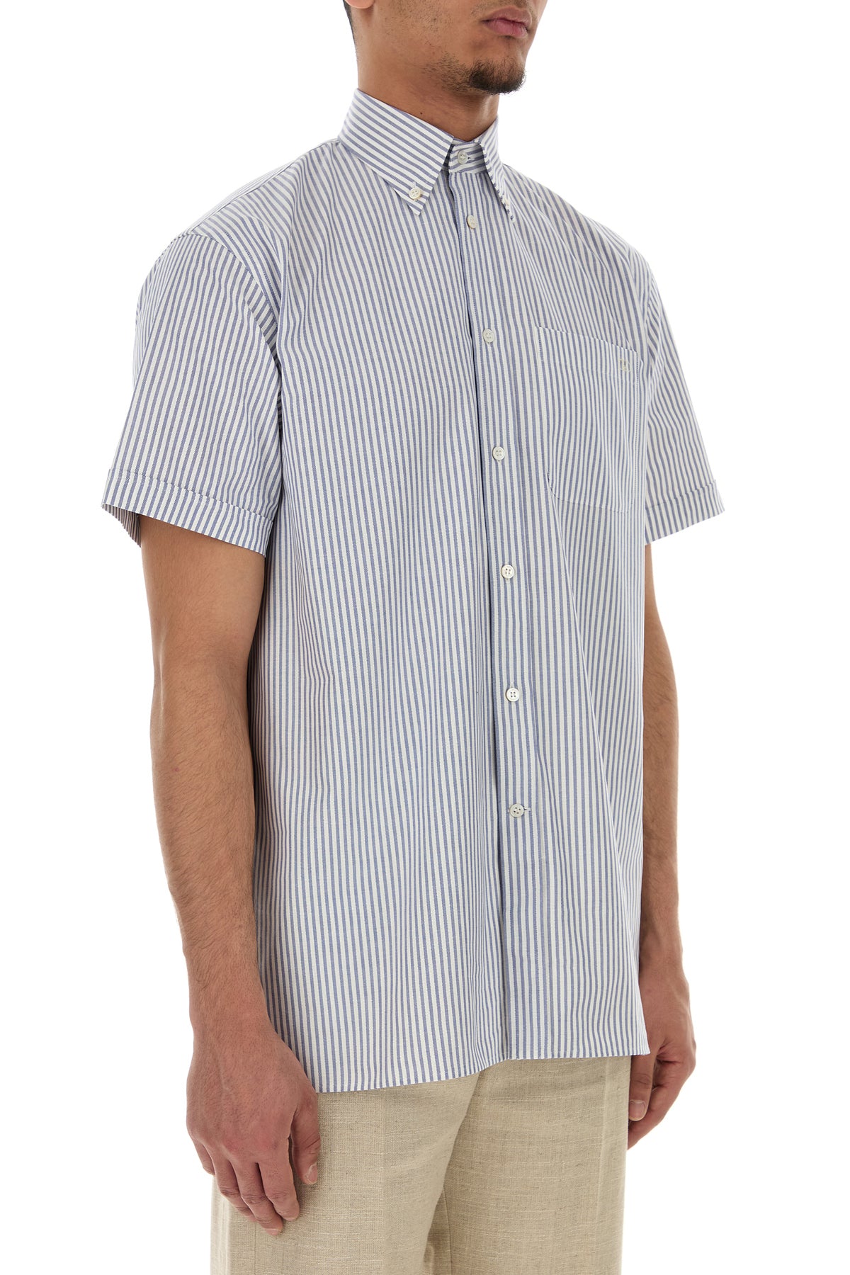 Short-sleeves shirt realized in pure cotton Oxford characterized by striped embroidery on the entire surface and VLogo Signature embroidery on the chest.