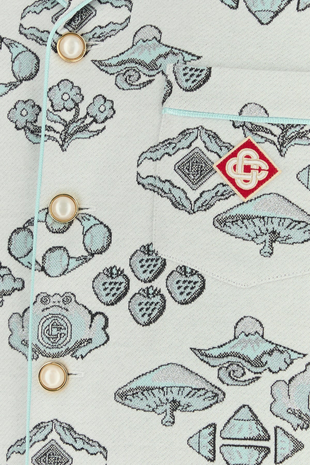 Short-sleeve shirt realized in stretch jacquard characterized by peculiar embroidery on the entire surface enriched by logoed patch on the chest.