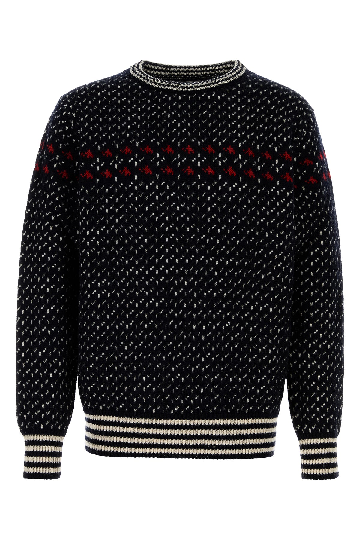 Sweater created i collaboration with Cabourn realized in pure wool characterized by peculiar embroidery on the entire surface.