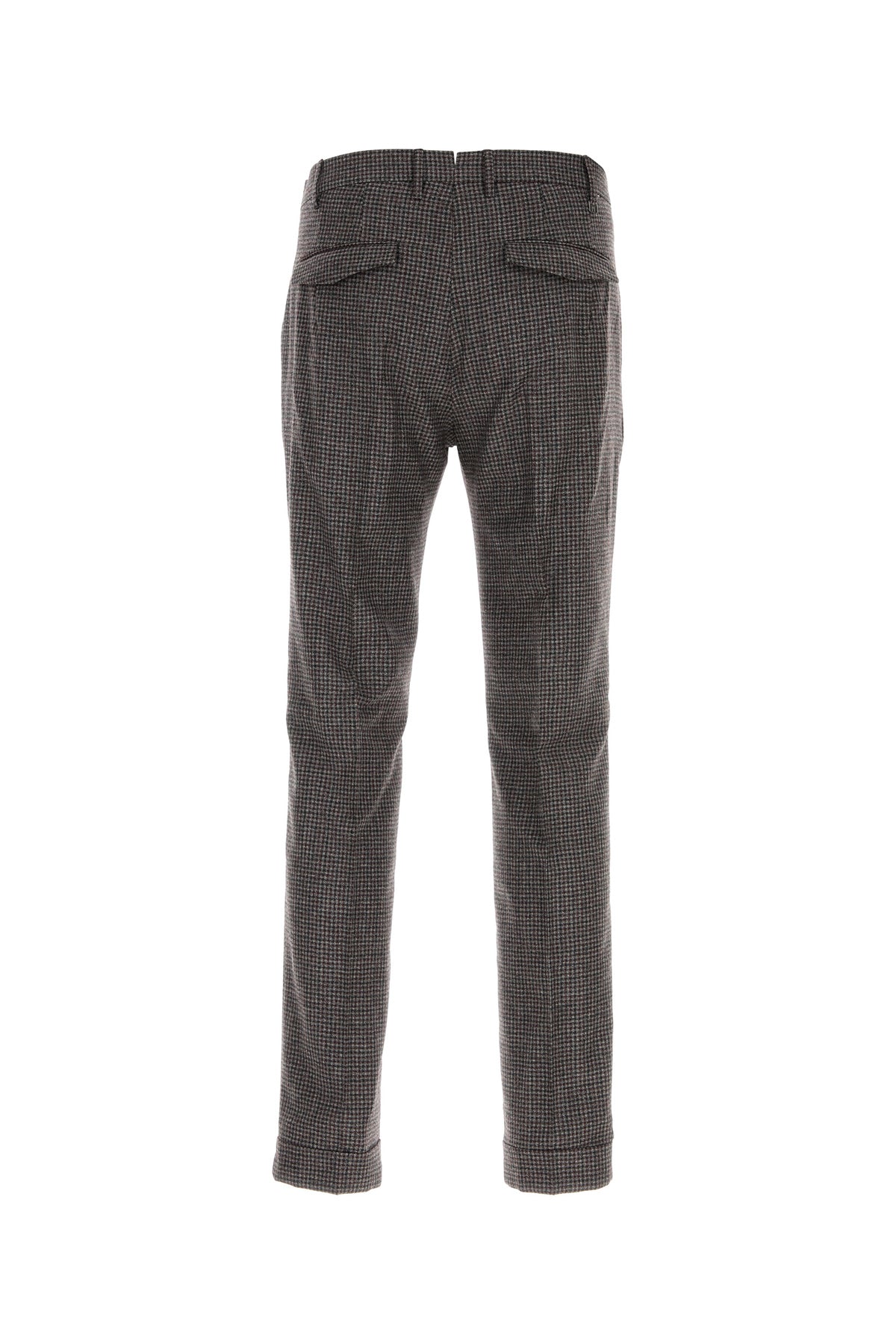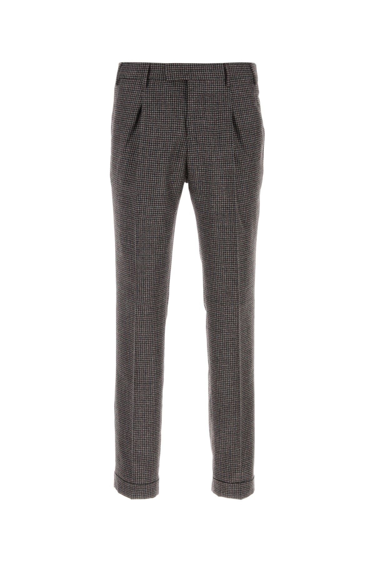Pant realized in pure virgin wool characterized by checked embroidery on the entire surface.