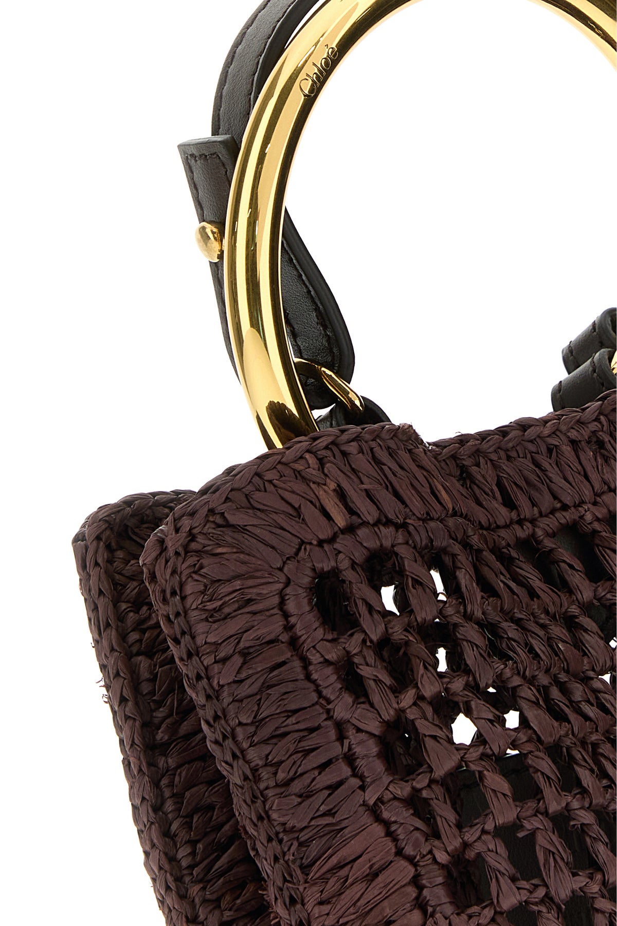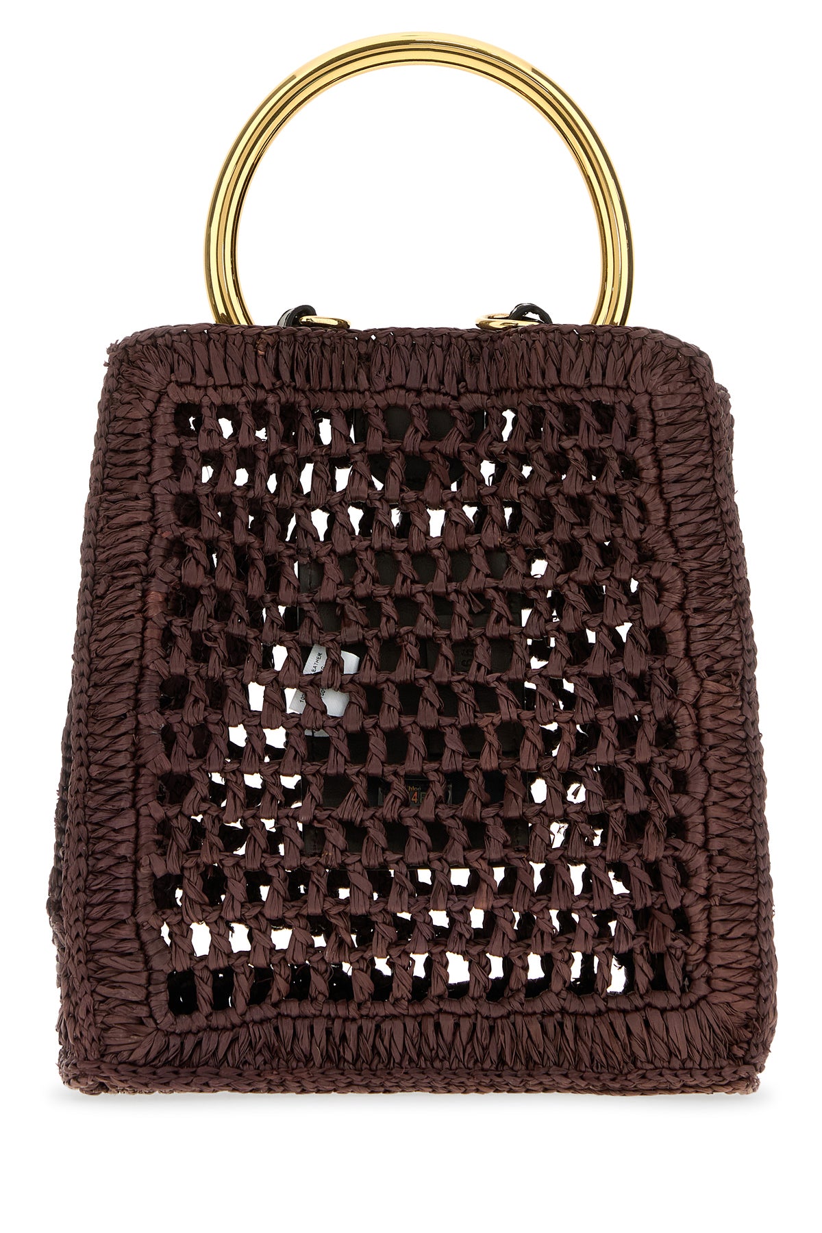 Handbag realized in raffia characterized by tonal embroidered logo at the front.