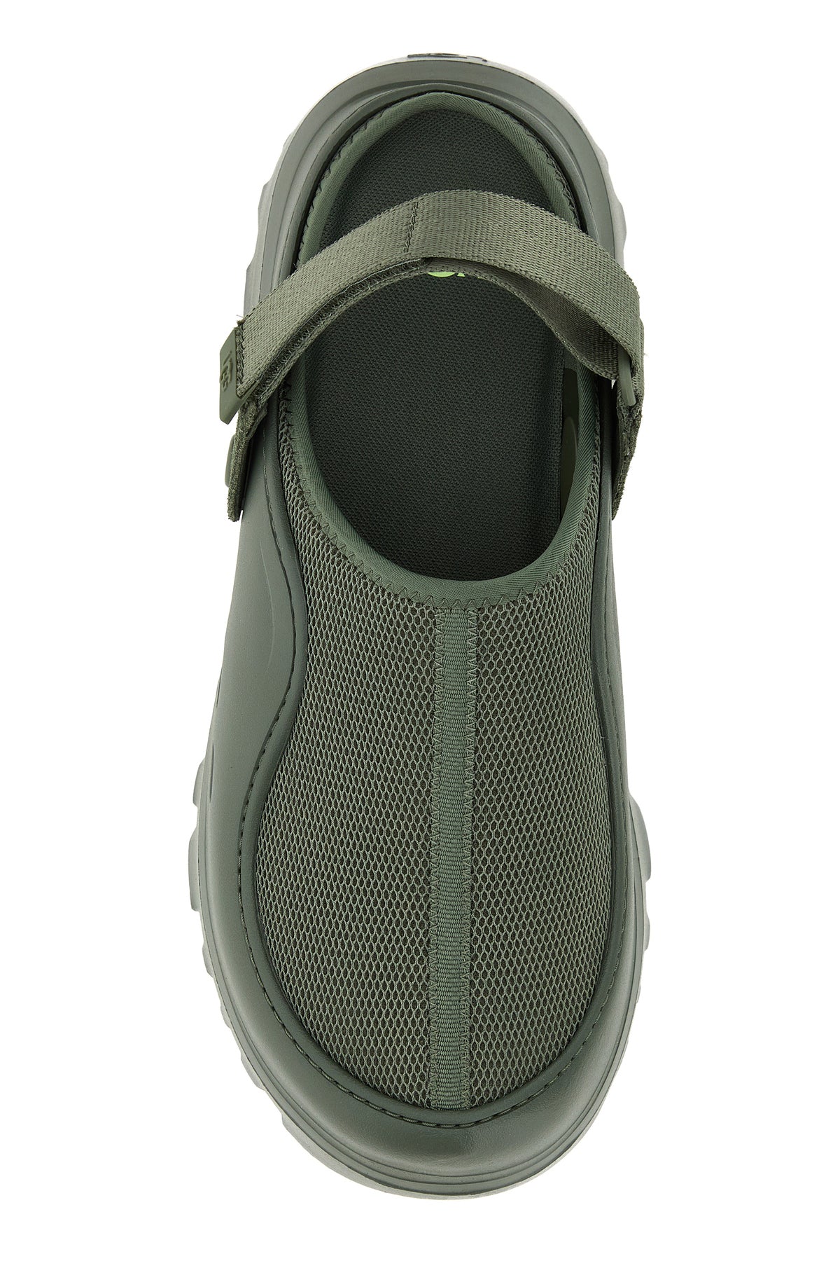 Slippers realized in rubber and mesh characterized by logo en relief on the adjustable strap.
