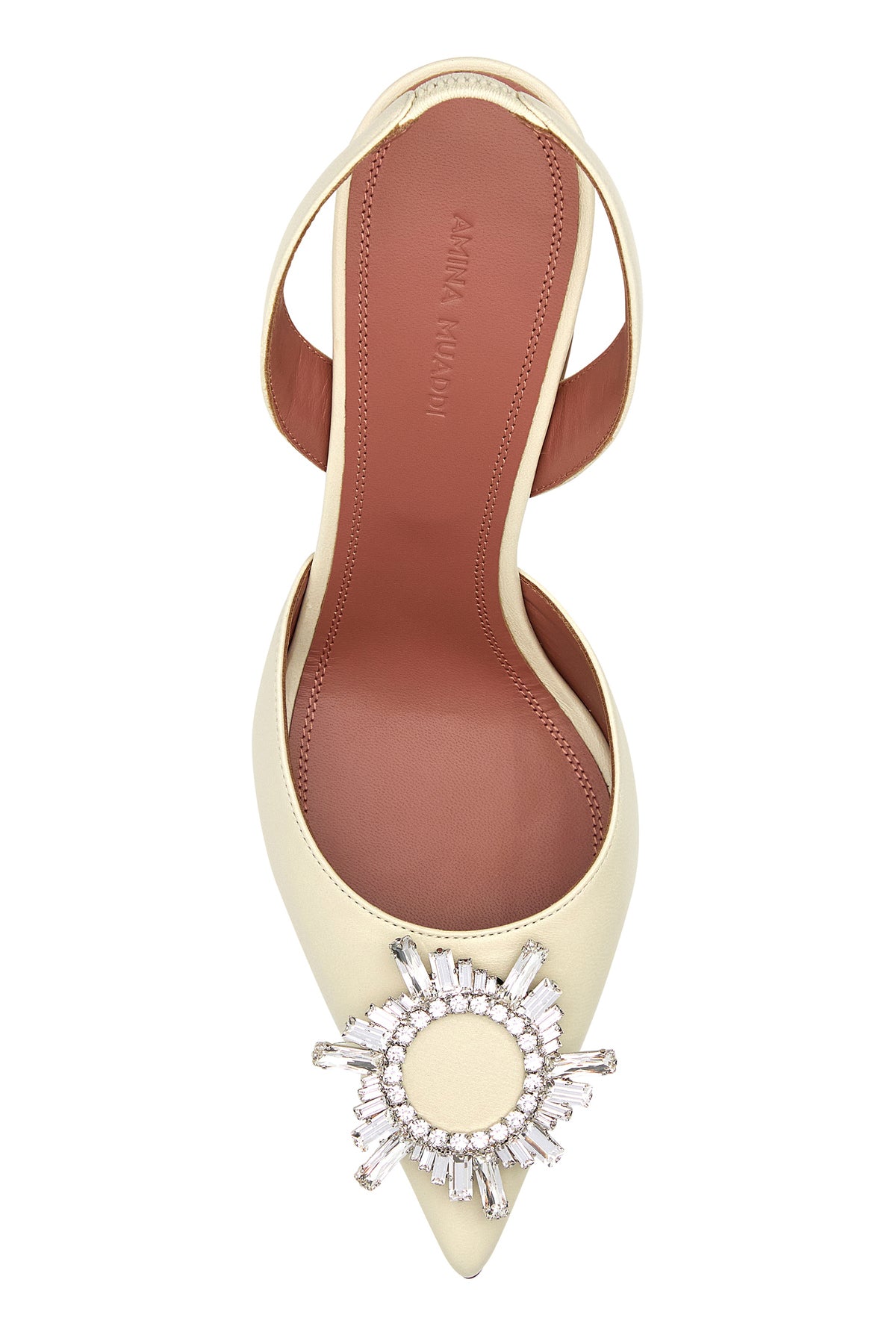 Slingback realized in leather enriched by jewel detail on the toe.