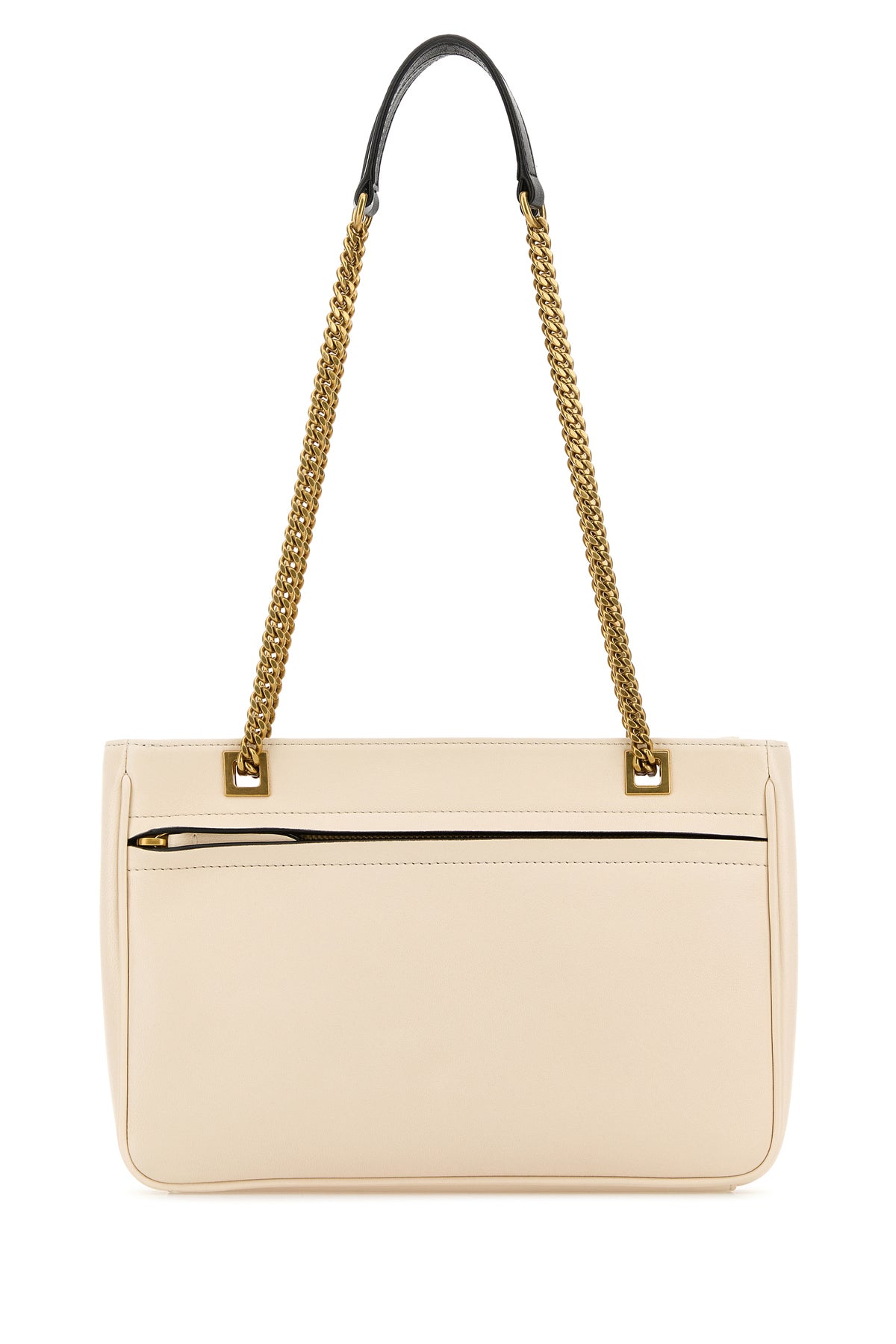 - Metal chain shoulder strap with leather shoulder pad that can be worn single or double